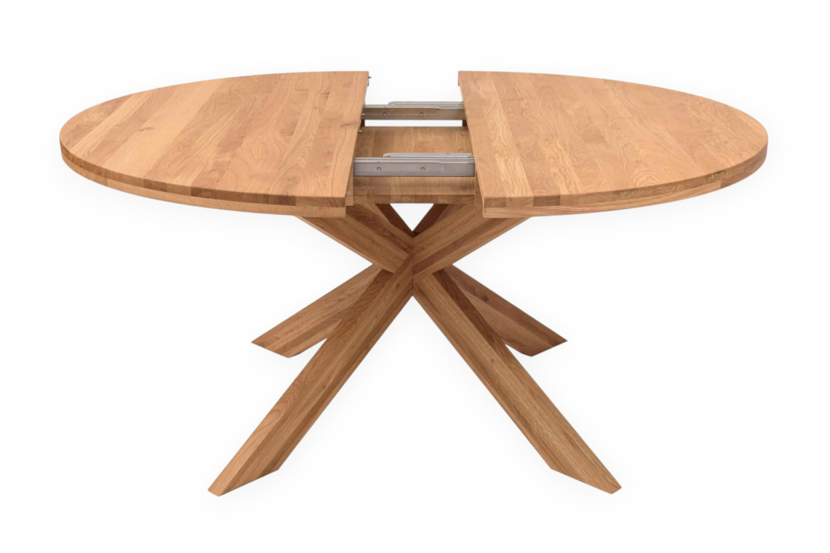 Однією з головних переваг моделі є продуманий розкладний механізм. У стандартному стані стільниця діаметром 120 см комфортно вміщує 4–5 осіб. Завдяки вставкам «2+2 см» стіл легко розширюється до 170 см, що дозволяє розмістити вже 6–8 гостей. Механізм працює плавно та надійно, а сама трансформація не потребує фізичних зусиль.