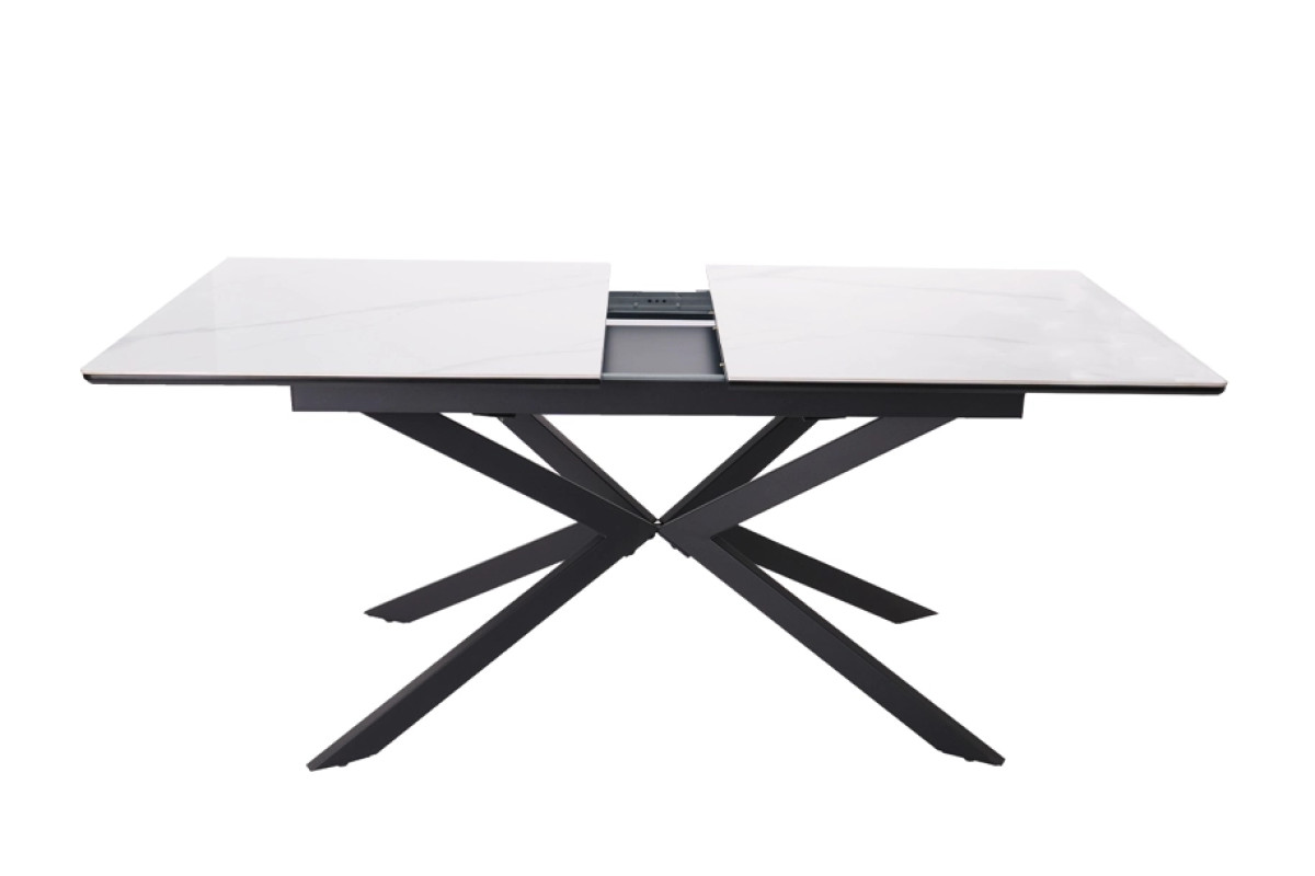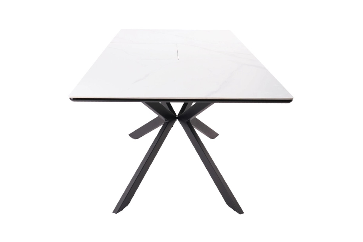 Обідній розкладний стіл Атлас — це сучасна модель із продуманими пропорціями та білим із легким відтінком мармуру, що легко вписується в будь-який інтер’єр. Завдяки розкладному механізму, довжину стільниці можна збільшити з 1600 мм до 2200 мм, створюючи комфортний простір для великих компаній чи сімейних свят. Стіл поєднує елегантність кераміки, міцність металевої опори та стабільність МДФ-основи, утворюючи ідеальний баланс між естетикою та практичністю.