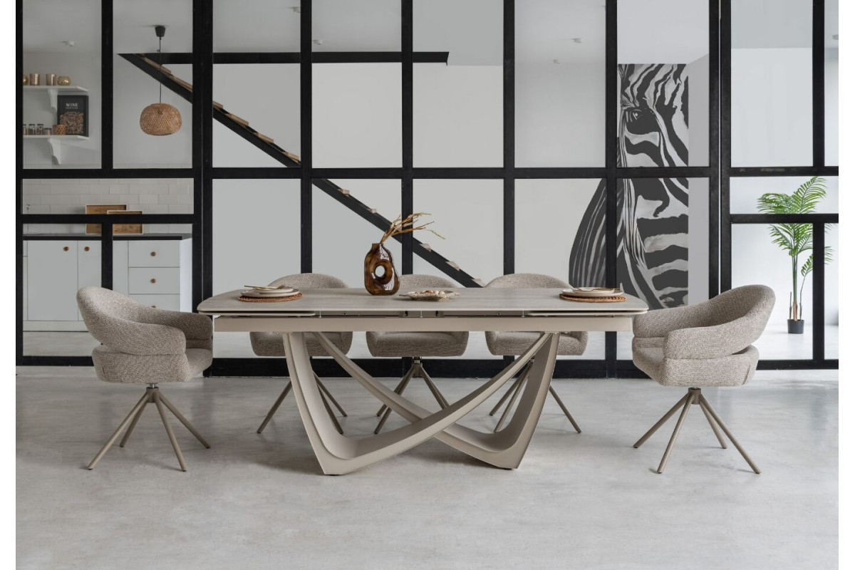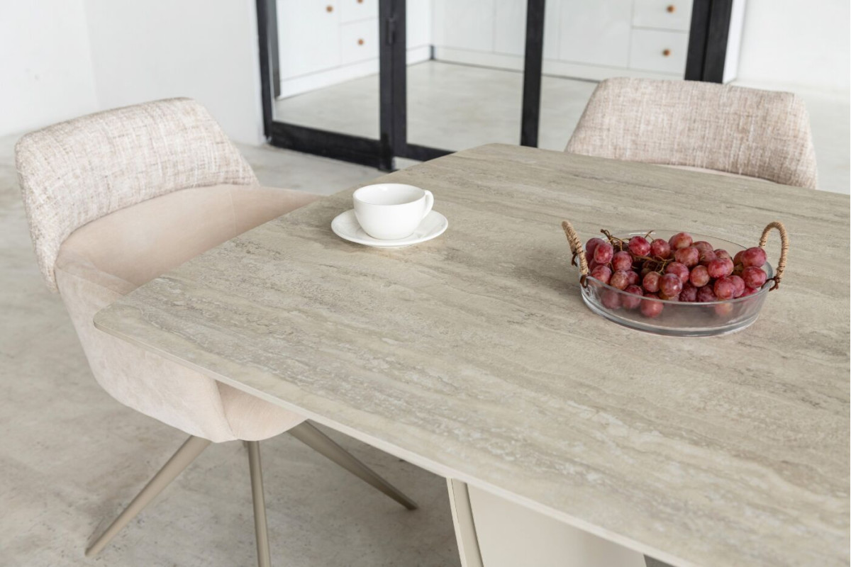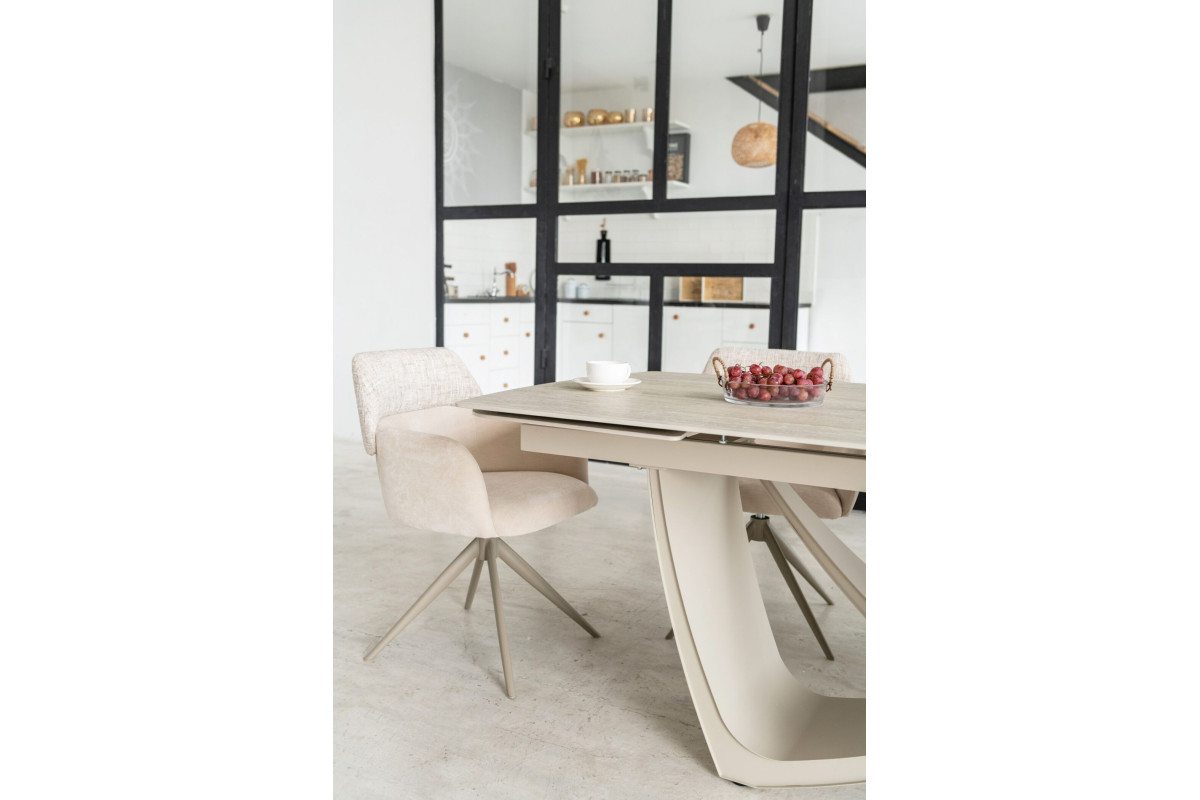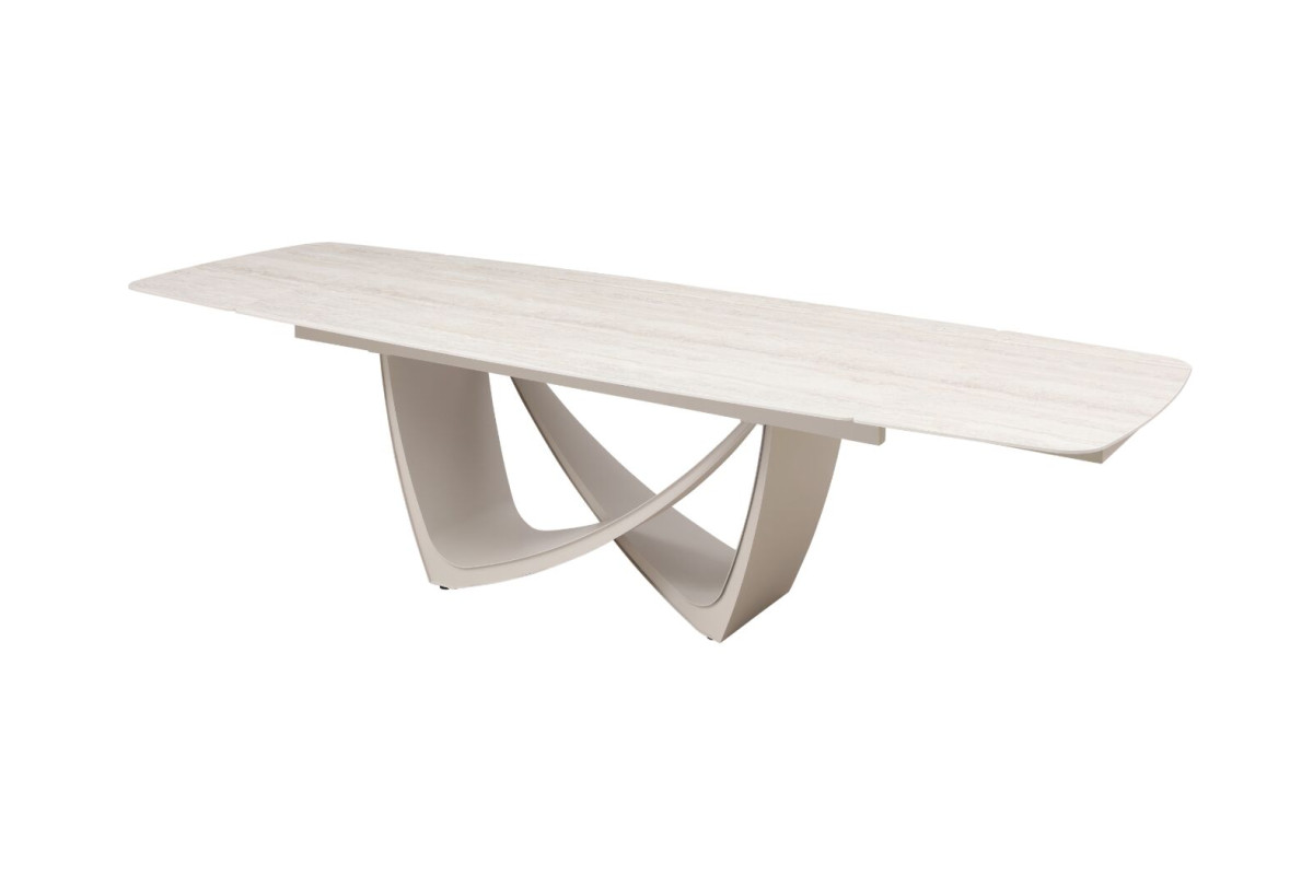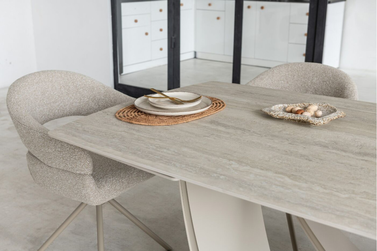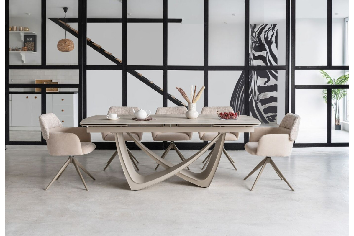 Керамічний стіл Беатріче TML-994 у відтінку грей травертін + бежевий — це втілення елегантності, практичності та сучасного стилю для просторих кухонь і їдалень. Велична прямокутна форма, стільниця з матової кераміки з ефектом натурального каменю та надійна металева основа в теплих бежевих тонах створюють розкішне поєднання дизайну та функціональності.Стіл має розкладну конструкцію з боковим механізмом, що дозволяє швидко збільшити довжину стільниці з 200 см до вражаючих 300 см. Це робить модель ідеальним вибором для великих родин або прийому гостей, адже за ним зручно розміститься до 12 осіб.Матова керамічна поверхня стільниці не лише вишукана на вигляд, а й надзвичайно практична — вона стійка до подряпин, високих температур, плям і легка у догляді. Основа зі сталевого фарбованого металу забезпечує надійну підтримку всієї конструкції, витримуючи вагу до 162.8 кг.Беатріче — це не просто стіл, це центральний акцент вашого інтер’єру, який поєднує в собі функціональність, довговічність і витонченість. Ідеально підходить для сучасного або скандинавського стилю, а також для інтер'єрів у природних, теплих відтінках.