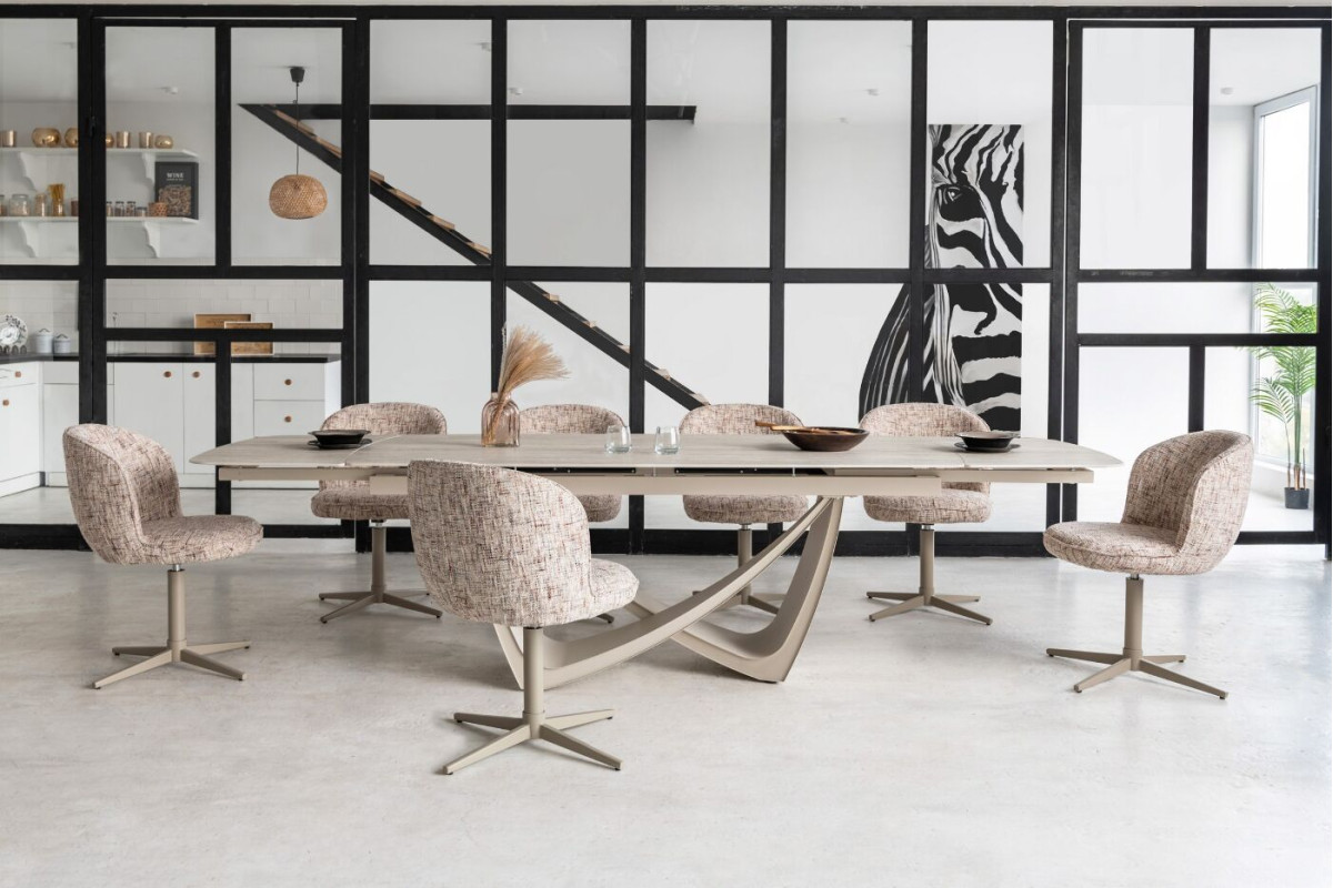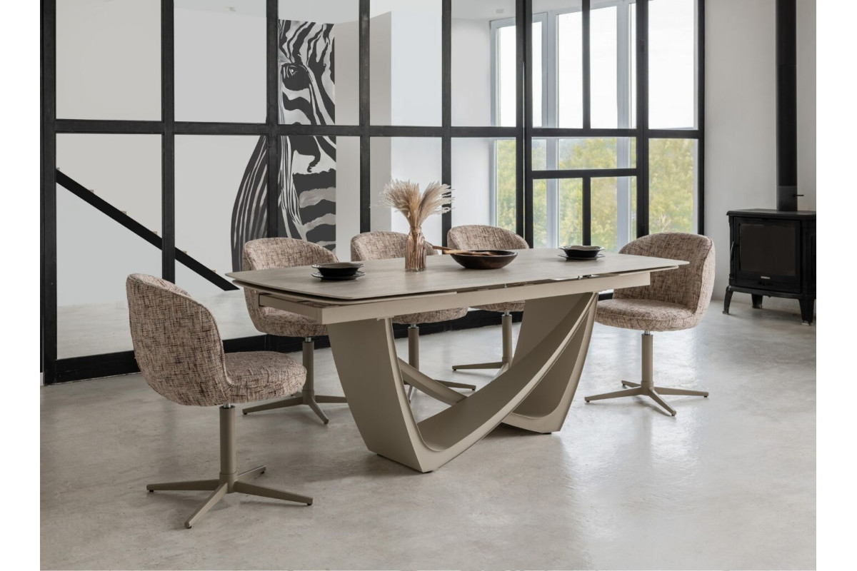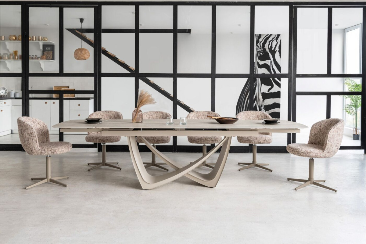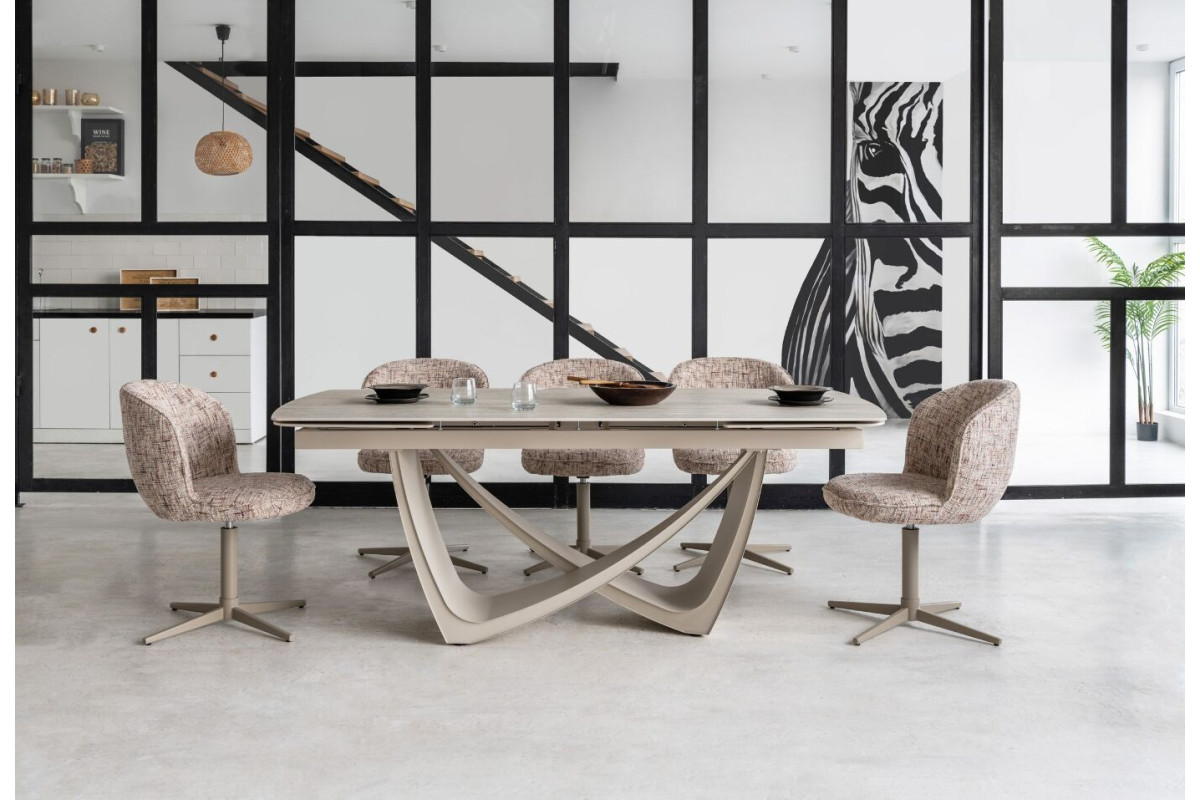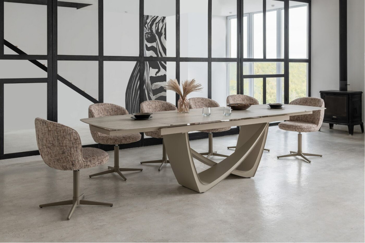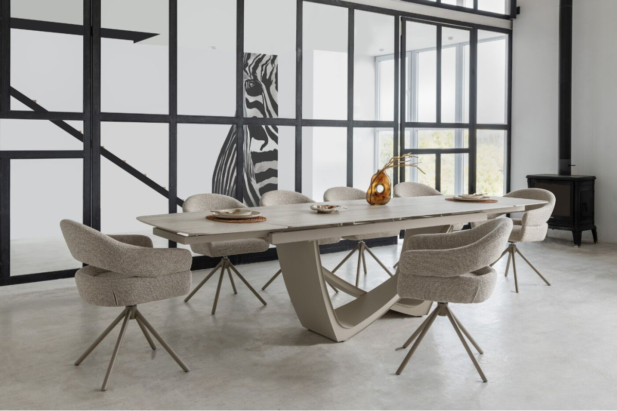 Керамічний стіл Беатріче TML-994 у відтінку грей травертін + бежевий — це втілення елегантності, практичності та сучасного стилю для просторих кухонь і їдалень. Велична прямокутна форма, стільниця з матової кераміки з ефектом натурального каменю та надійна металева основа в теплих бежевих тонах створюють розкішне поєднання дизайну та функціональності.Стіл має розкладну конструкцію з боковим механізмом, що дозволяє швидко збільшити довжину стільниці з 200 см до вражаючих 300 см. Це робить модель ідеальним вибором для великих родин або прийому гостей, адже за ним зручно розміститься до 12 осіб.Матова керамічна поверхня стільниці не лише вишукана на вигляд, а й надзвичайно практична — вона стійка до подряпин, високих температур, плям і легка у догляді. Основа зі сталевого фарбованого металу забезпечує надійну підтримку всієї конструкції, витримуючи вагу до 162.8 кг.Беатріче — це не просто стіл, це центральний акцент вашого інтер’єру, який поєднує в собі функціональність, довговічність і витонченість. Ідеально підходить для сучасного або скандинавського стилю, а також для інтер'єрів у природних, теплих відтінках.