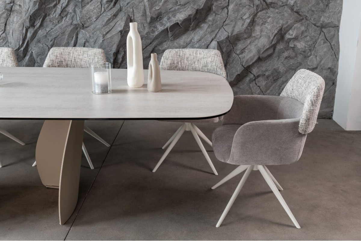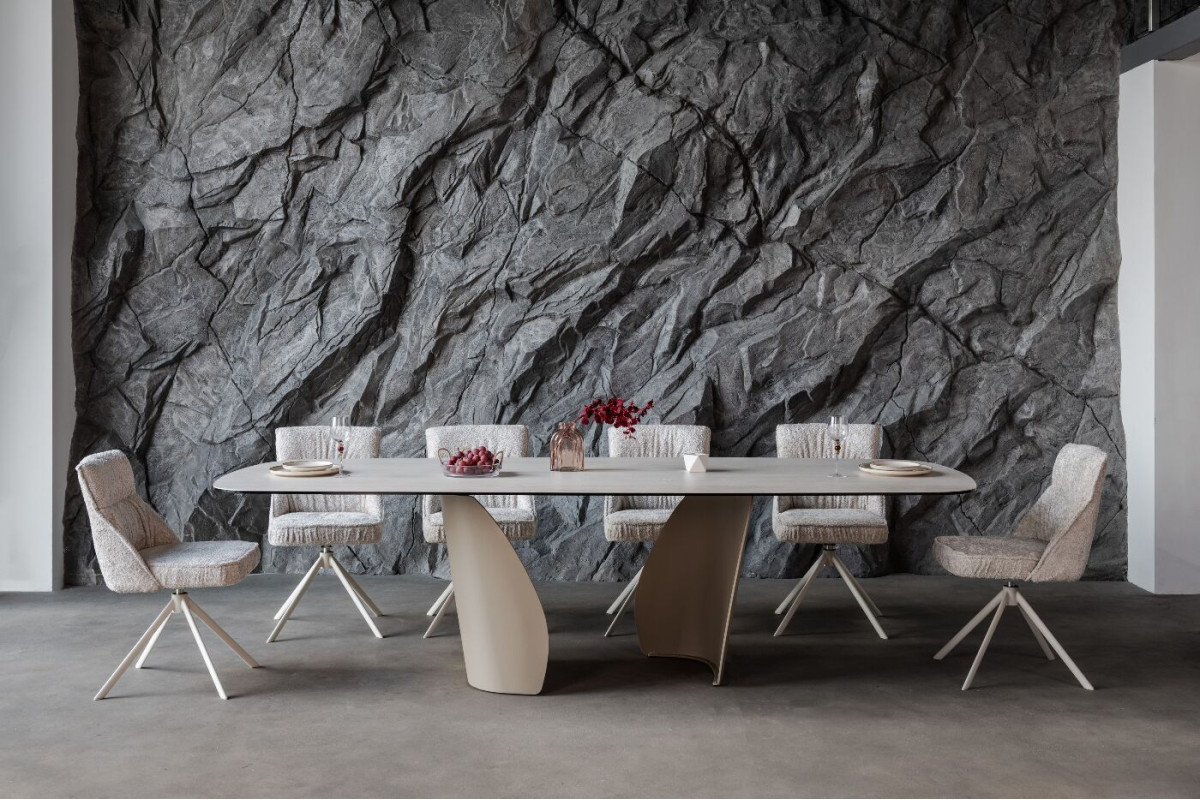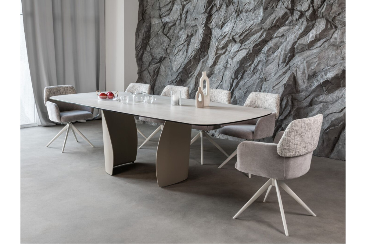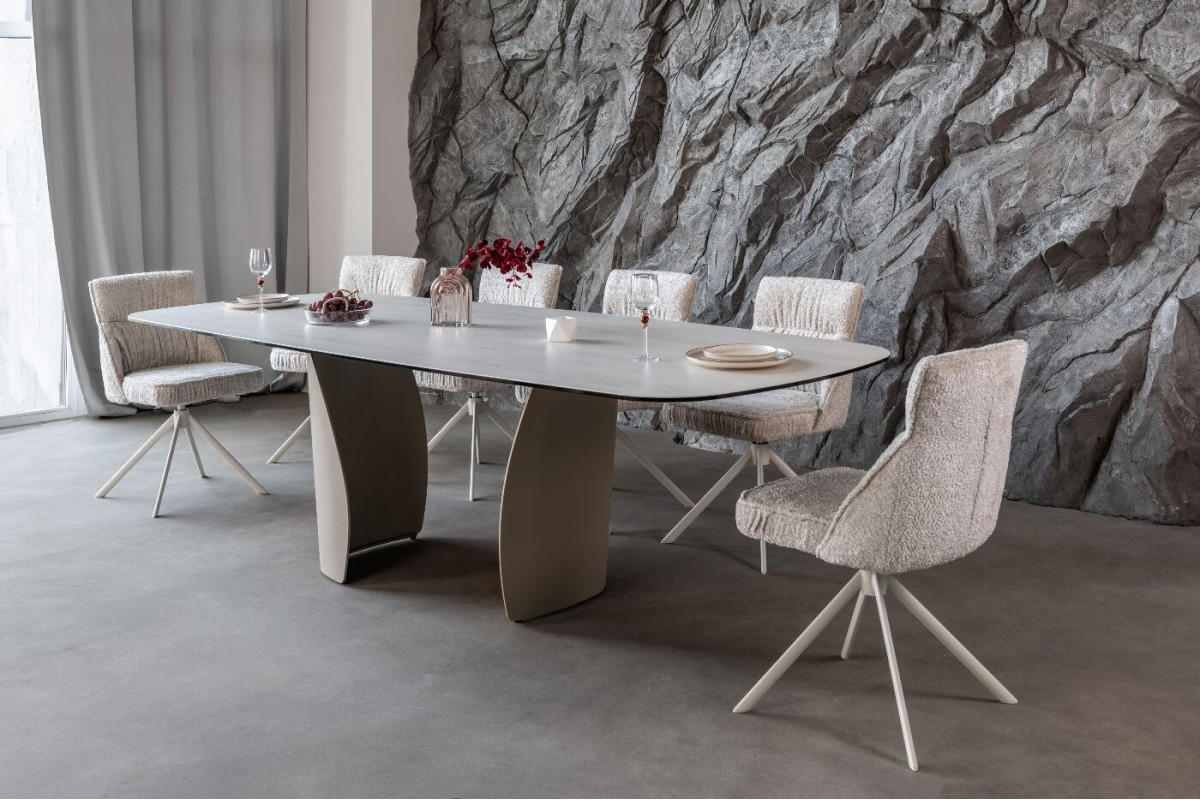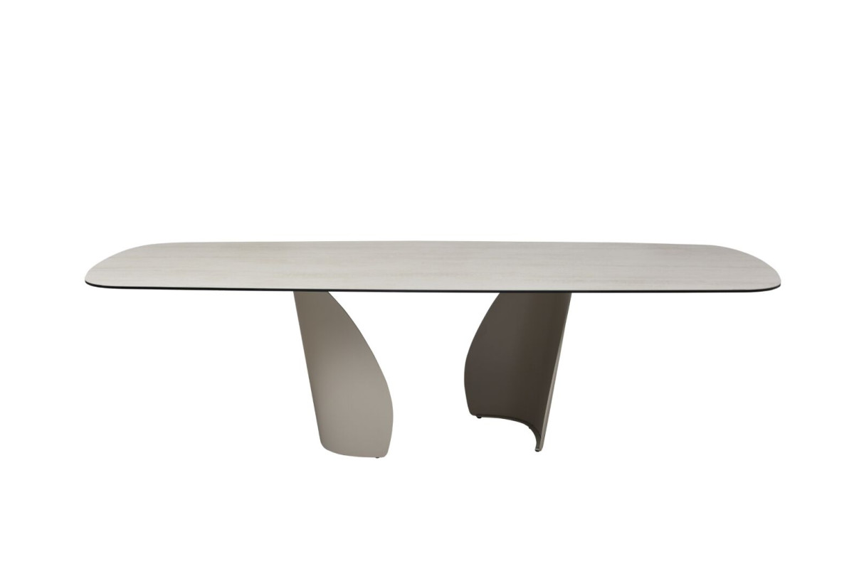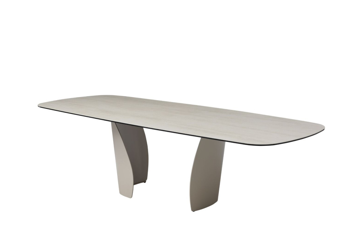 Керамічний стіл Паола TML-1265 в кольорі сендвейв + бежевий — це вишукане поєднання сучасних матеріалів і елегантного дизайну. Його прямокутна стільниця виконана з матової кераміки, яка додає виробу особливої витонченості. Стільниця не тільки прекрасно виглядає, але й має високу стійкість до подряпин, температурних коливань та вологості, що робить стіл практичним і довговічним у використанні.Колір сендвейв — це нейтральний, теплий відтінок, що нагадує кольори природного піску з ніжними бежевими і сірими тонами. Він має м’який, приємний вигляд, створюючи атмосферу спокою і гармонії.Цей стіл має досить великі розміри — 280 см в довжину і 110 см в ширину, що дозволяє комфортно розмістити велику кількість людей, що робить його ідеальним для просторих обідніх зон або віталень. Його нерозкладна конструкція додає додаткову міцність і стійкість.Паола TML-1265 — це не просто меблі, а стильний акцент, який додає інтер'єру елегантності і сучасного шарму, підкреслюючи гармонію в дизайні вашого простору.
