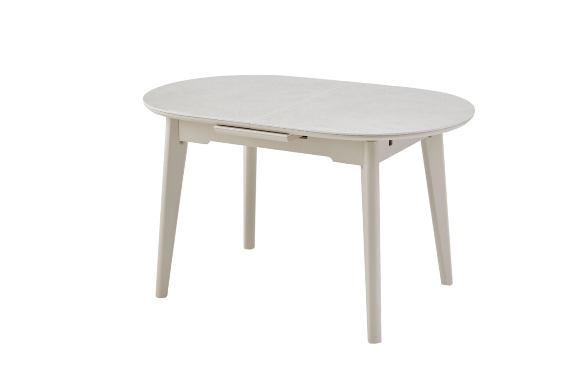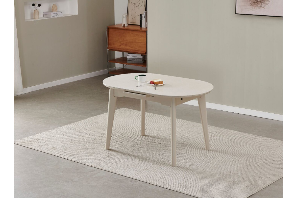 Керамічний стіл TM-126-1 крема саббія + капучино — це вишукане поєднання теплих відтінків, природної елегантності та продуманої функціональності. Його м’які форми та витончена палітра створюють атмосферу затишку й гармонії, роблячи стіл ідеальним центром обідньої зони.Стільниця з матової кераміки у кольорі крема саббія вражає ніжною текстурою, що нагадує природний камінь, і чудово поєднується з основою кольору капучино. Завдяки захисному покриттю поверхня стійка до подряпин, плям і перепадів температур, що гарантує довговічність і зручність у догляді.Автоматичний механізм розкладки дозволяє збільшити довжину столу з 130 до 160 см одним легким рухом, створюючи додатковий простір для гостей або родинних вечерь.Міцна основа з фарбованого дерева у відтінку капучино надає конструкції стабільності та тепла, а також гармонійно підкреслює природний колір стільниці.TM-126-1 крема саббія + капучино — це стіл, який поєднує красу, комфорт і практичність, створюючи у вашому домі атмосферу спокою, стилю та доброго смаку.