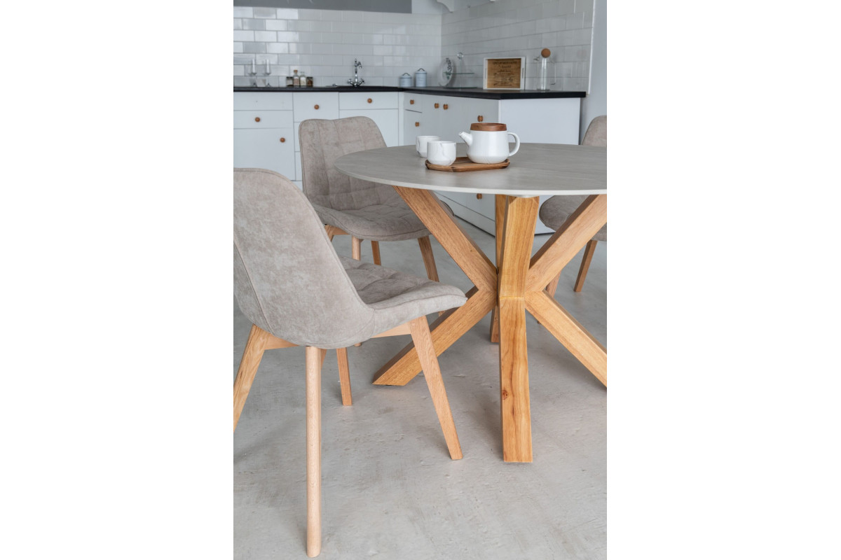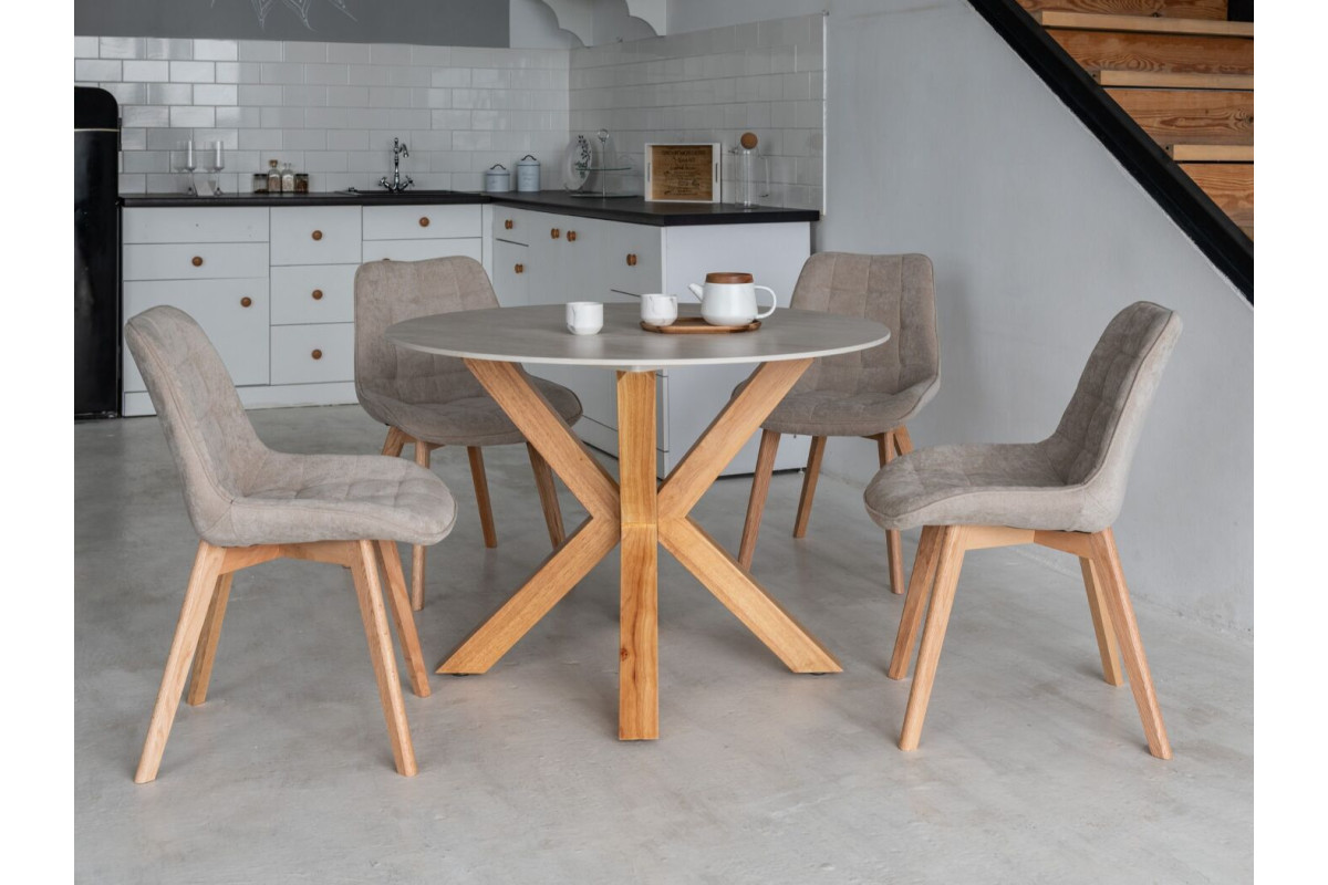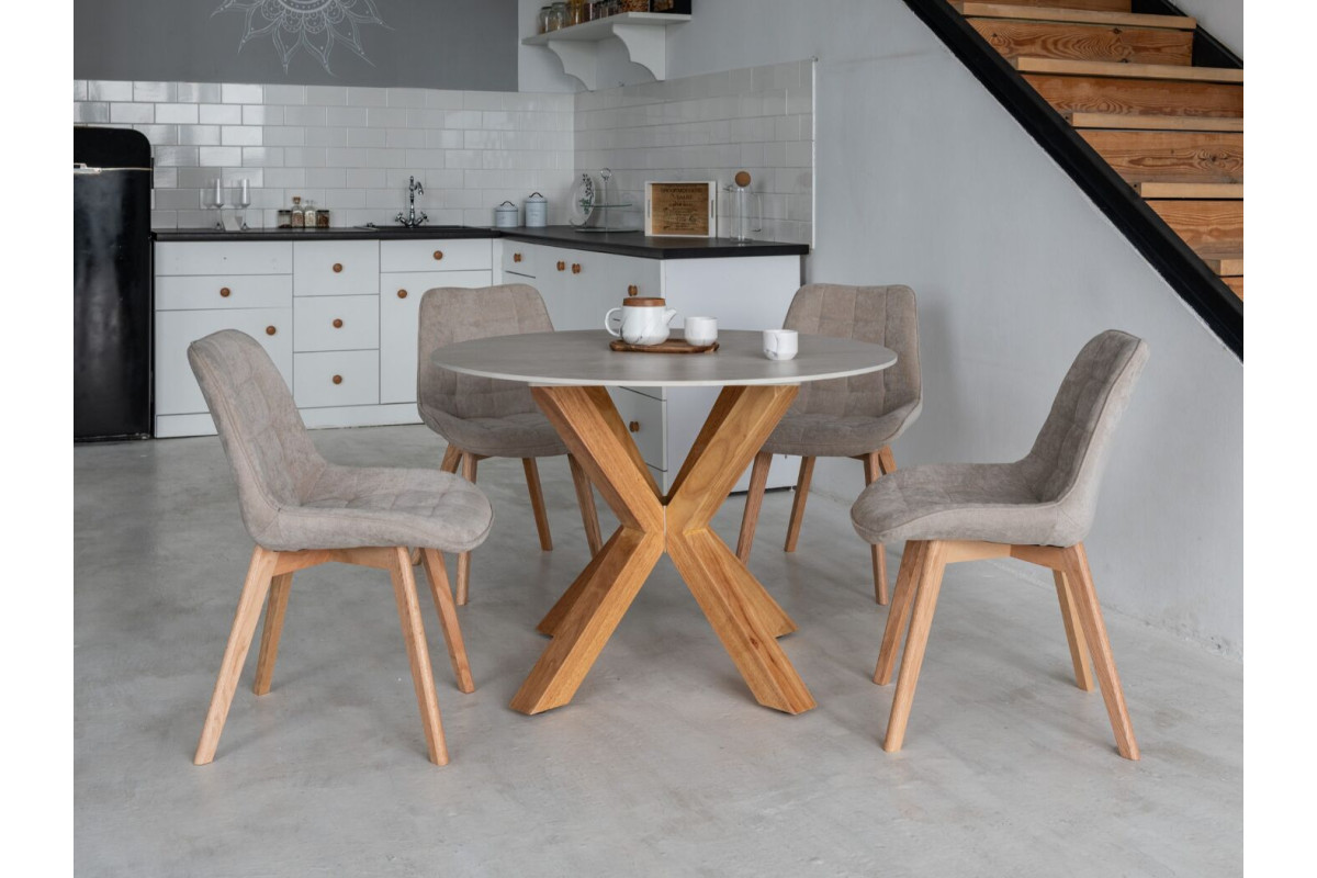 Керамічний стіл TM-237 вуд вейн + натуральний каучук — це гармонійне поєднання природної текстури та сучасного дизайну. Кругла стільниця з матової кераміки у відтінку вуд вейн підкреслює теплу красу природного дерева, створюючи атмосферу затишку та спокою.Основа з натурального каучуку забезпечує відмінну стійкість і довговічність, а її м’який природний відтінок додає інтер’єру витонченості. Завдяки продуманим пропорціям і плавним формам, стіл чудово доповнить як сучасний, так і скандинавський стиль.Діаметр 110 см робить його ідеальним варіантом для сімейних обідів або дружніх посиденьок, а кругла форма сприяє комфортному спілкуванню.