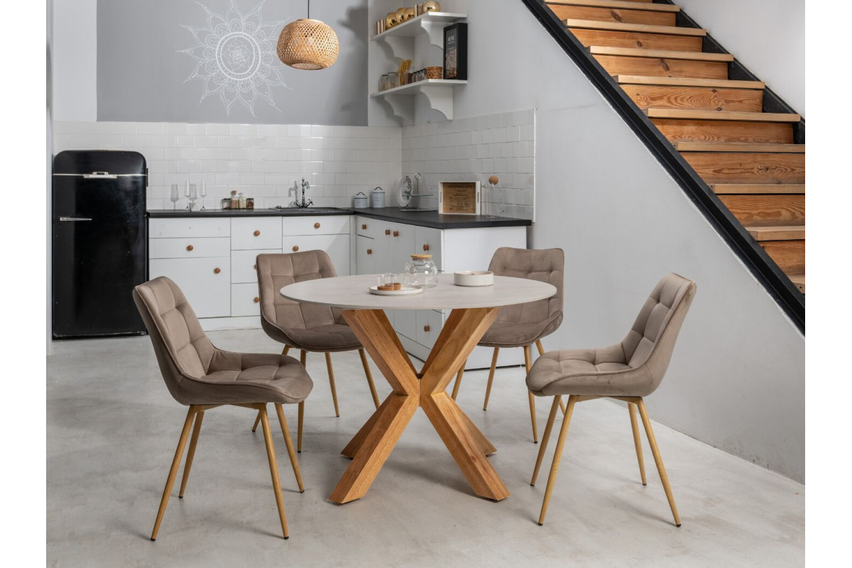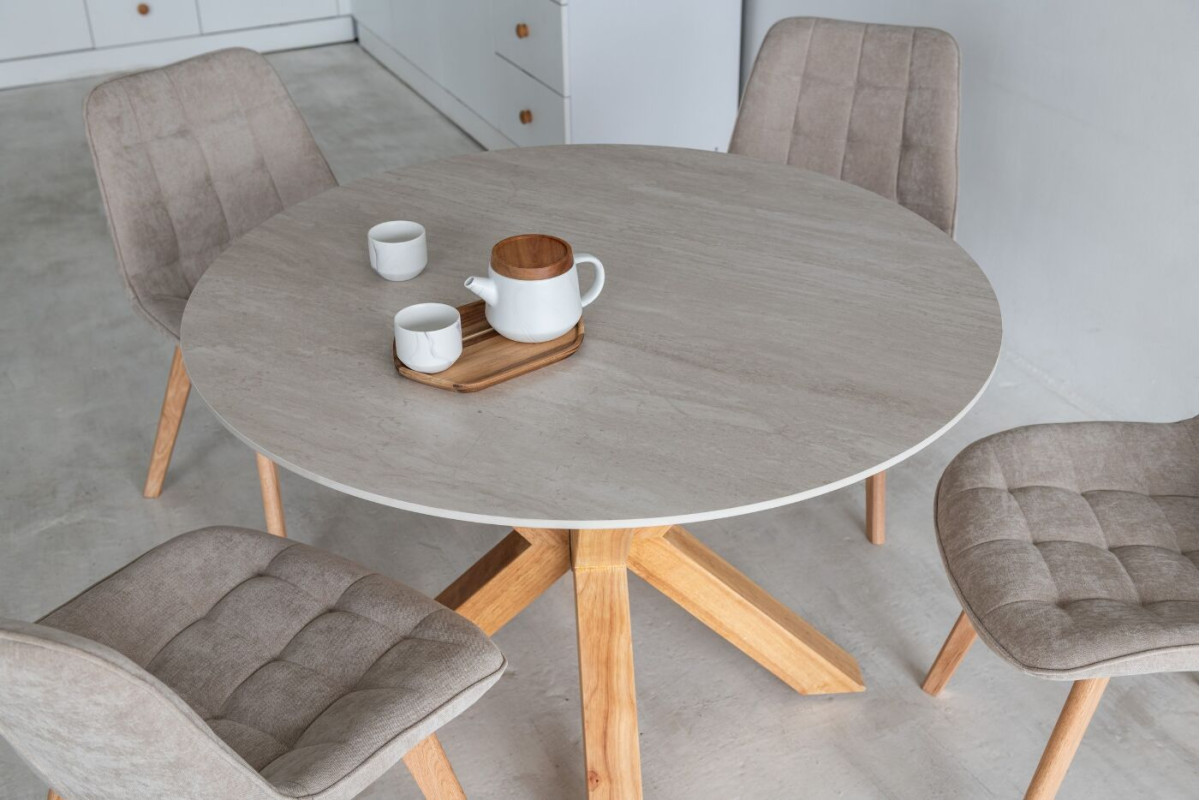Керамічний стіл TM-237 вуд вейн + натуральний каучук — це гармонійне поєднання природної текстури та сучасного дизайну. Кругла стільниця з матової кераміки у відтінку вуд вейн підкреслює теплу красу природного дерева, ст... Read more...