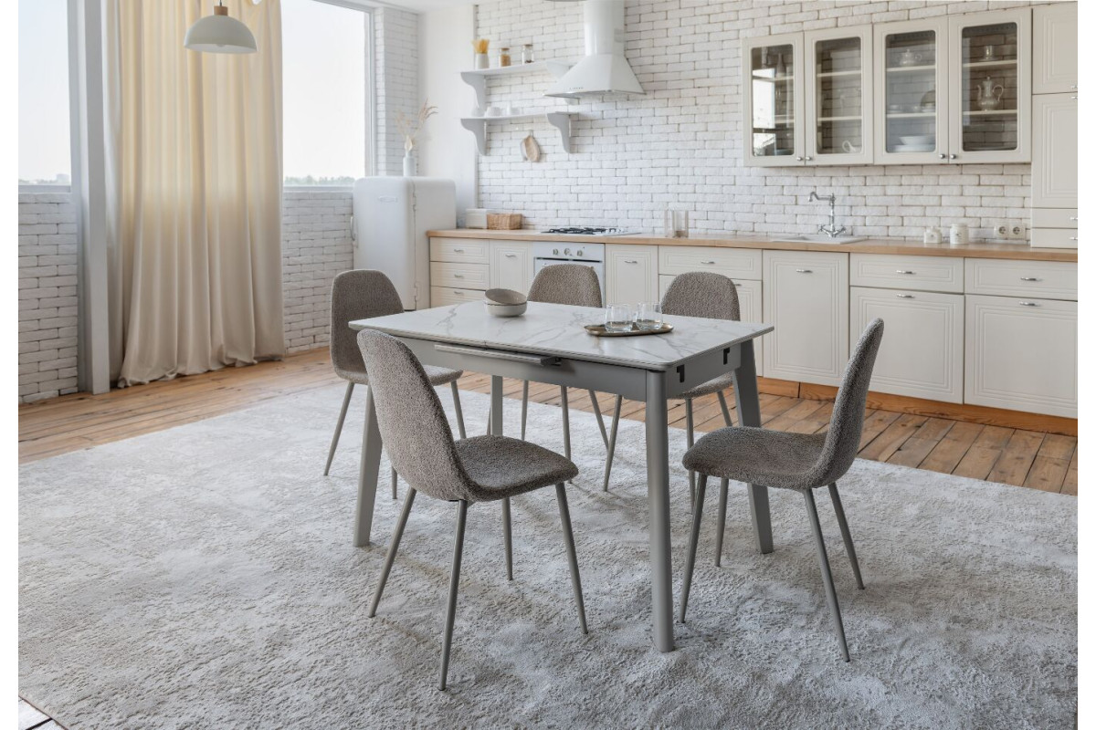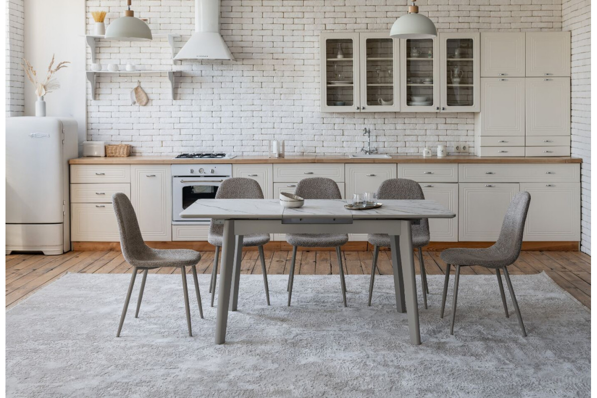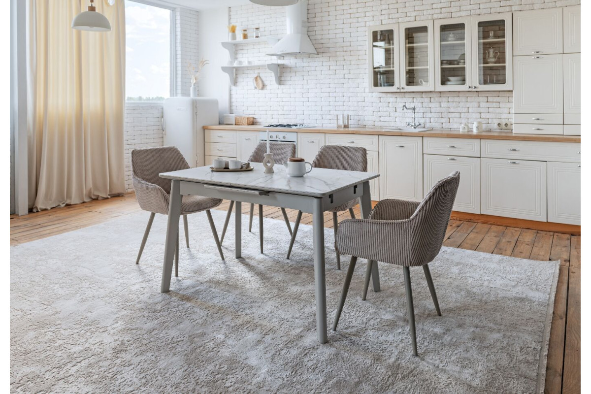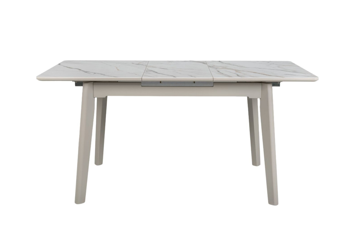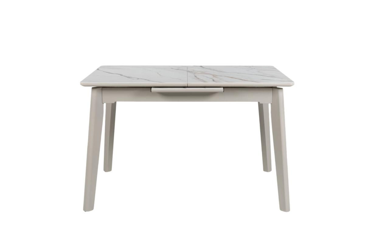 TM-76 — сучасний розкладний стіл, який поєднує витонченість природних відтінків та надійність перевірених матеріалів. Відтінок голден сенд із теплим пісочним акцентом надає інтер’єру затишку та вишуканої теплоти. Ідеальний вибір для їдальні чи кухні у натуральних, скандинавських або середземноморських тонах.Стільниця виконана з матової кераміки у комбінації з матовим МДФ — практичне й стильне рішення, стійке до подряпин та високих температур. Основа з пофарбованого дерева забезпечує надійність та стабільність конструкції.Стіл має автоматичний розкладний механізм, що дозволяє збільшити довжину зі 120 до 160 см — ідеально для прийому гостей або родинних вечерь.