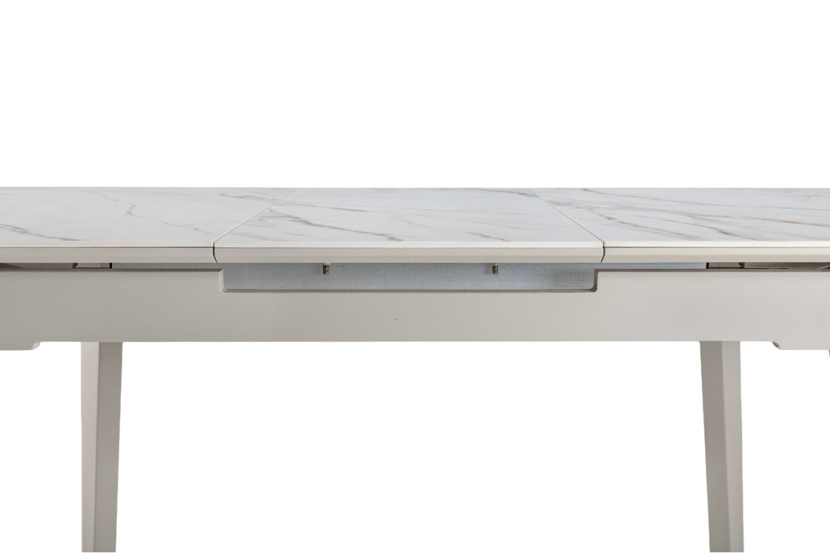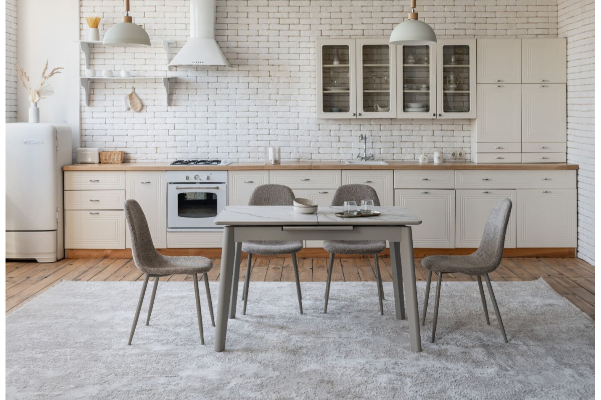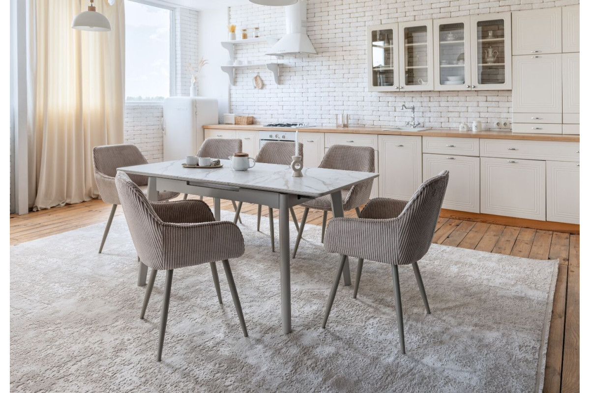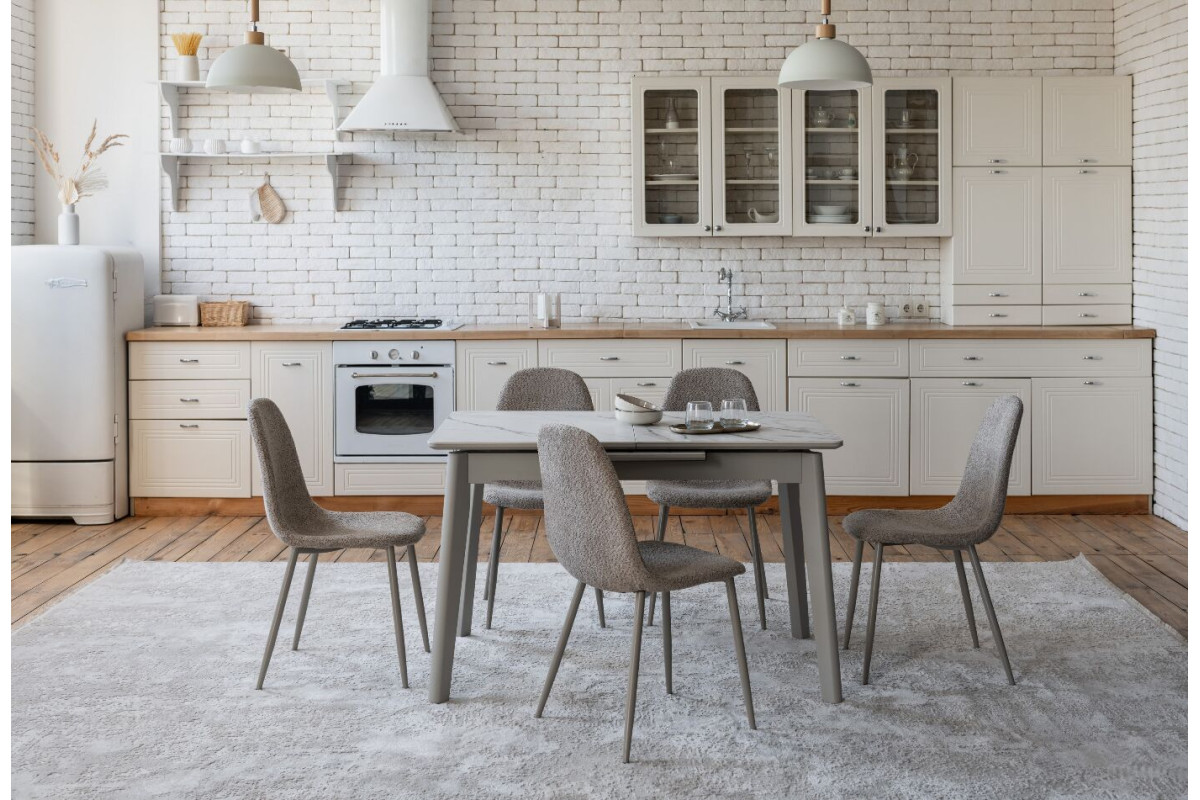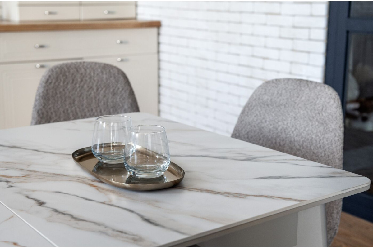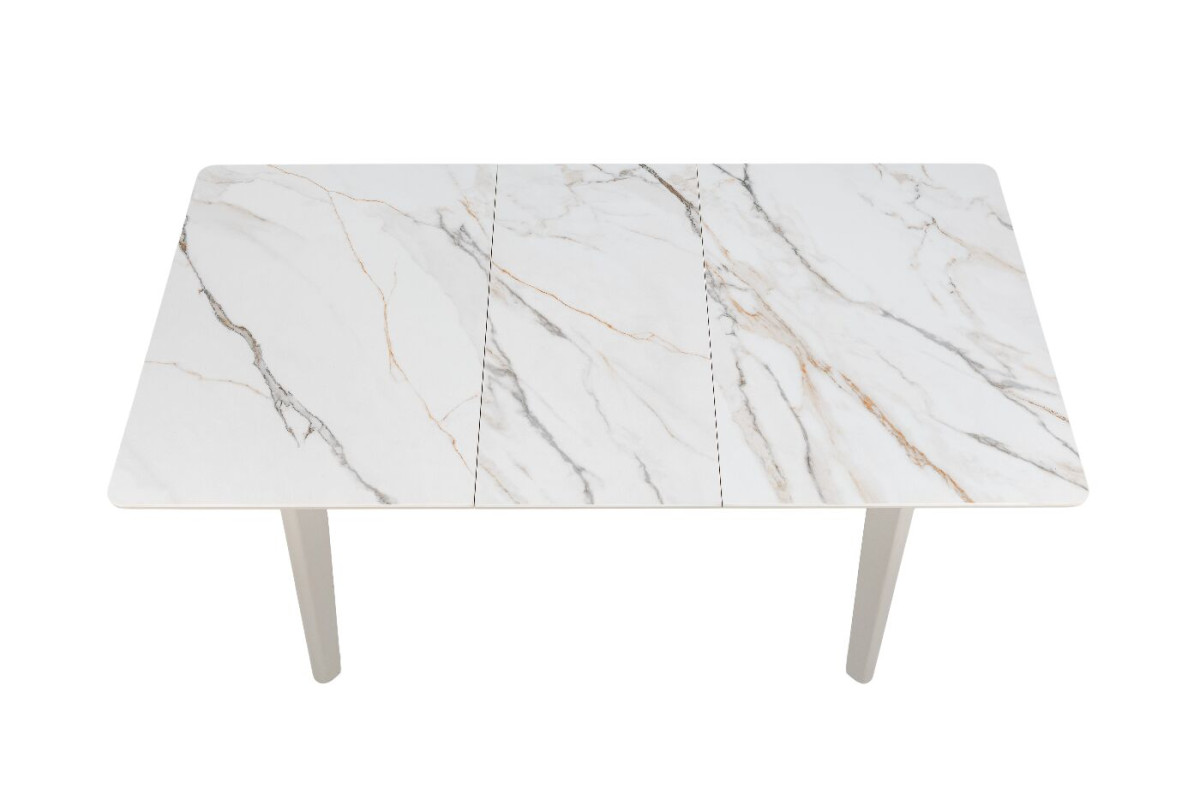 TM-76 — сучасний розкладний стіл, який поєднує витонченість природних відтінків та надійність перевірених матеріалів. Відтінок голден сенд із теплим пісочним акцентом надає інтер’єру затишку та вишуканої теплоти. Ідеальний вибір для їдальні чи кухні у натуральних, скандинавських або середземноморських тонах.Стільниця виконана з матової кераміки у комбінації з матовим МДФ — практичне й стильне рішення, стійке до подряпин та високих температур. Основа з пофарбованого дерева забезпечує надійність та стабільність конструкції.Стіл має автоматичний розкладний механізм, що дозволяє збільшити довжину зі 120 до 160 см — ідеально для прийому гостей або родинних вечерь.