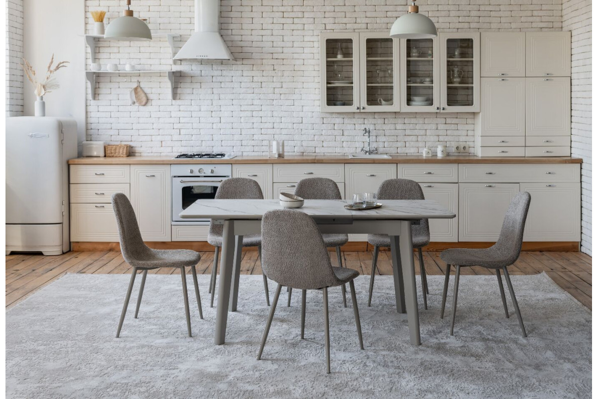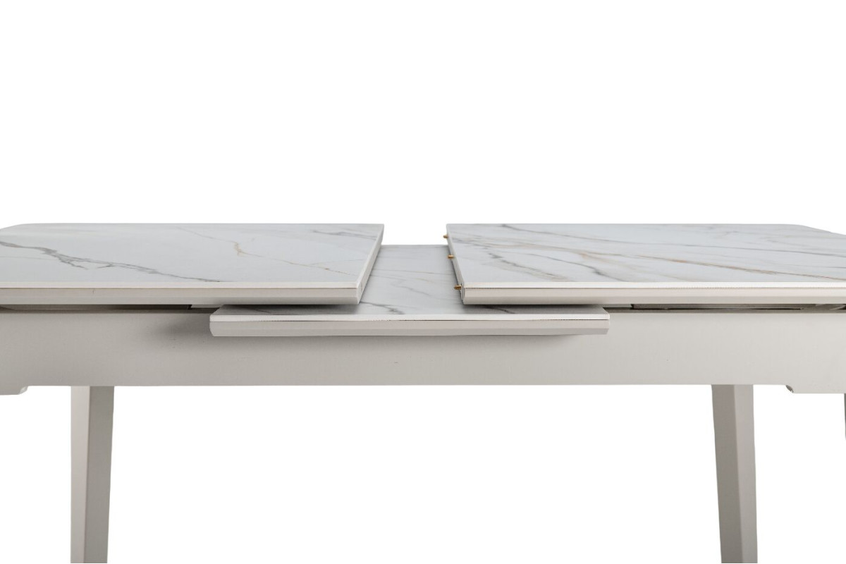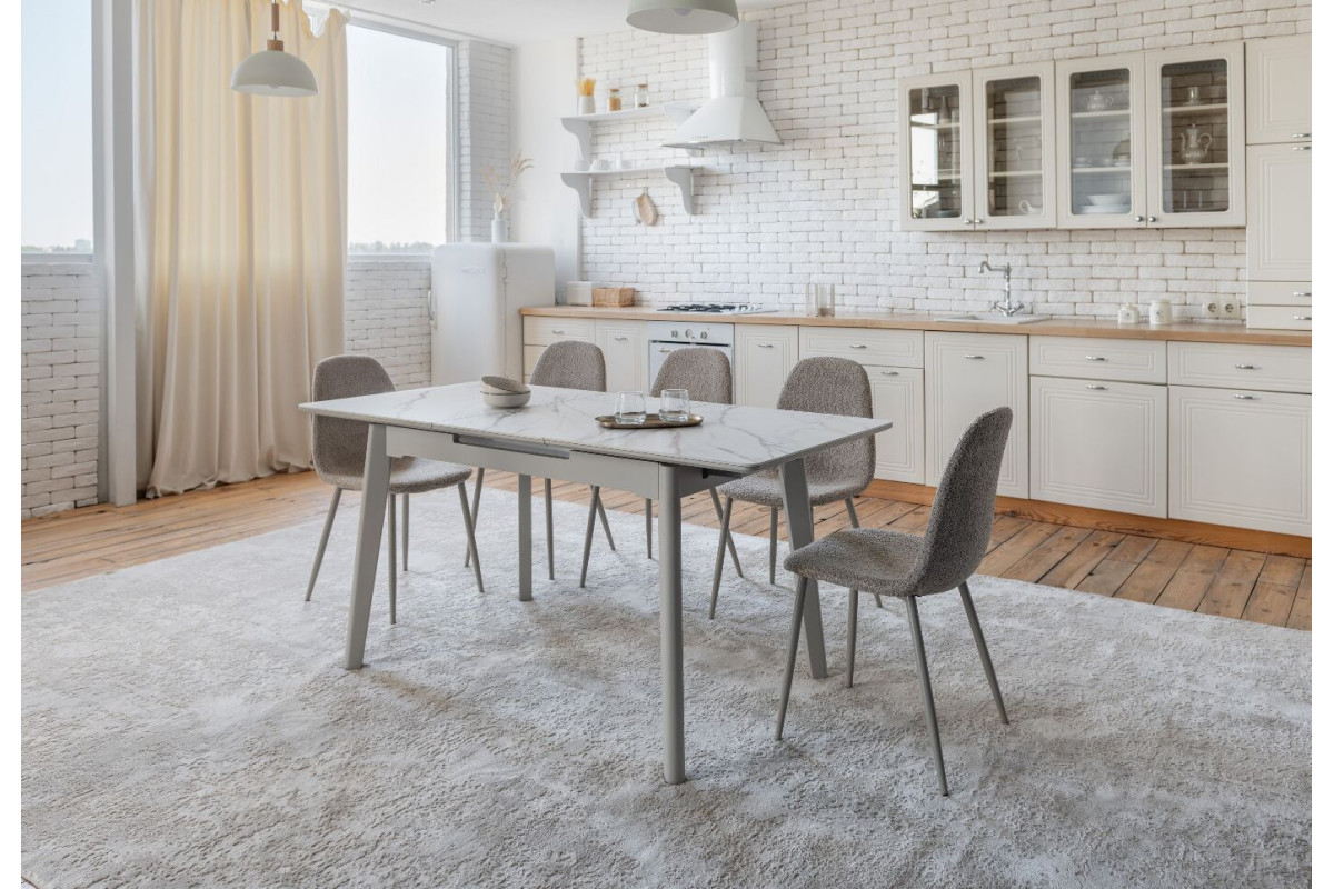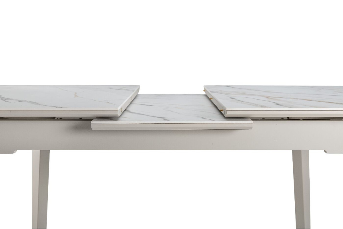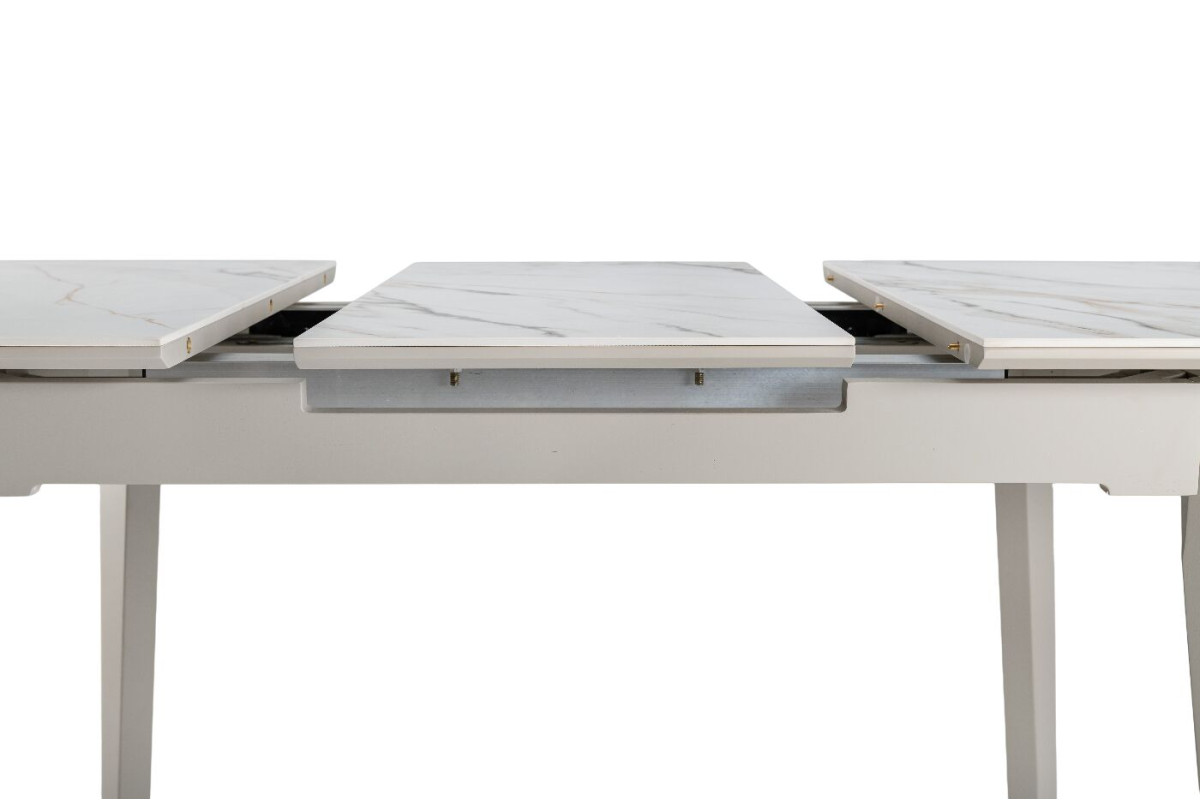 TM-76 — сучасний розкладний стіл, який поєднує витонченість природних відтінків та надійність перевірених матеріалів. Відтінок голден сенд із теплим пісочним акцентом надає інтер’єру затишку та вишуканої теплоти. Ідеальний вибір для їдальні чи кухні у натуральних, скандинавських або середземноморських тонах.Стільниця виконана з матової кераміки у комбінації з матовим МДФ — практичне й стильне рішення, стійке до подряпин та високих температур. Основа з пофарбованого дерева забезпечує надійність та стабільність конструкції.Стіл має автоматичний розкладний механізм, що дозволяє збільшити довжину зі 120 до 160 см — ідеально для прийому гостей або родинних вечерь.