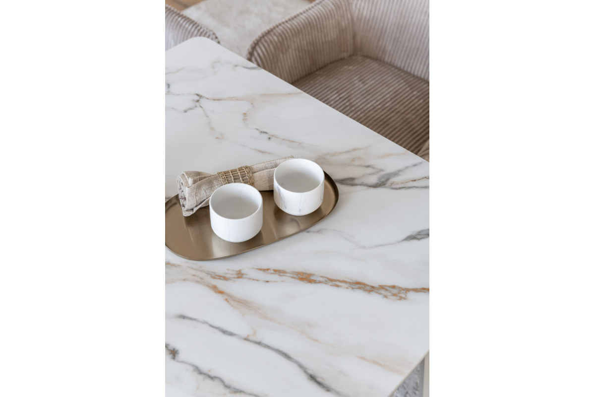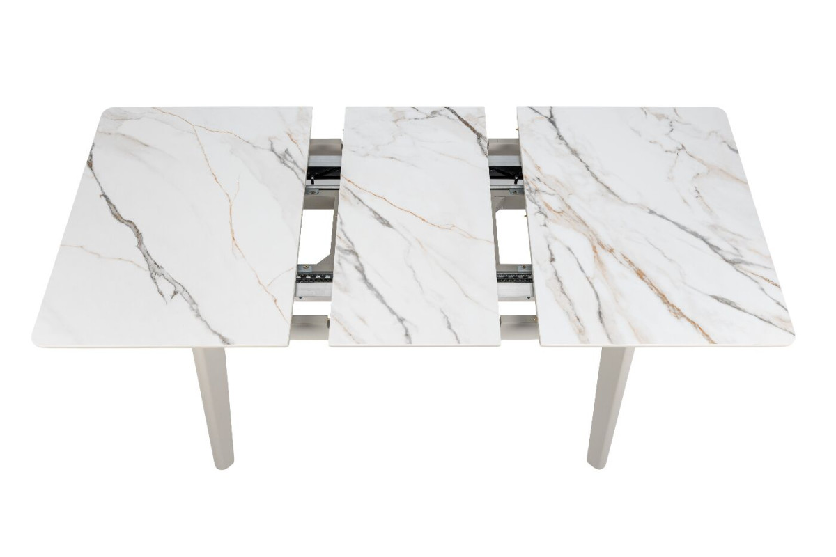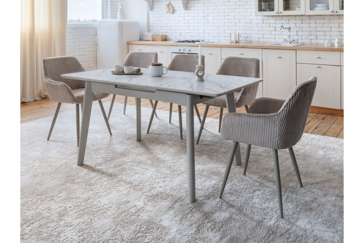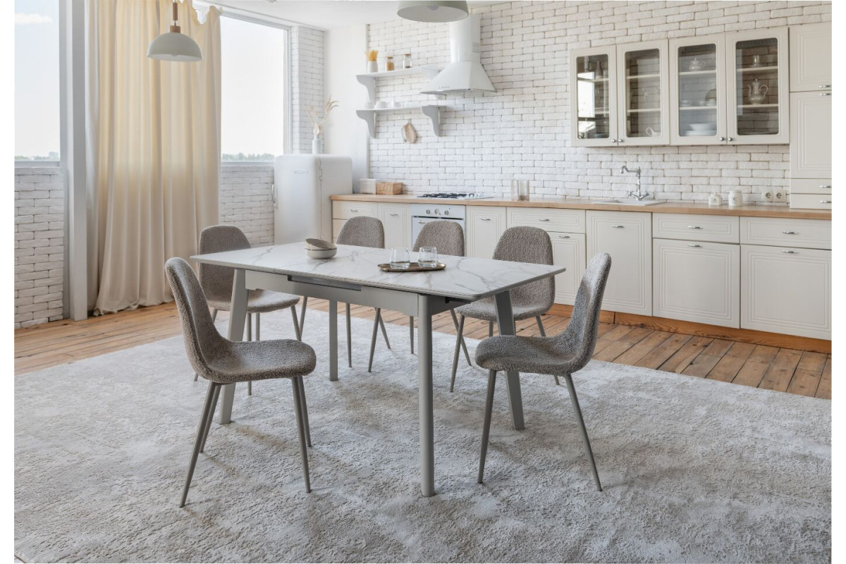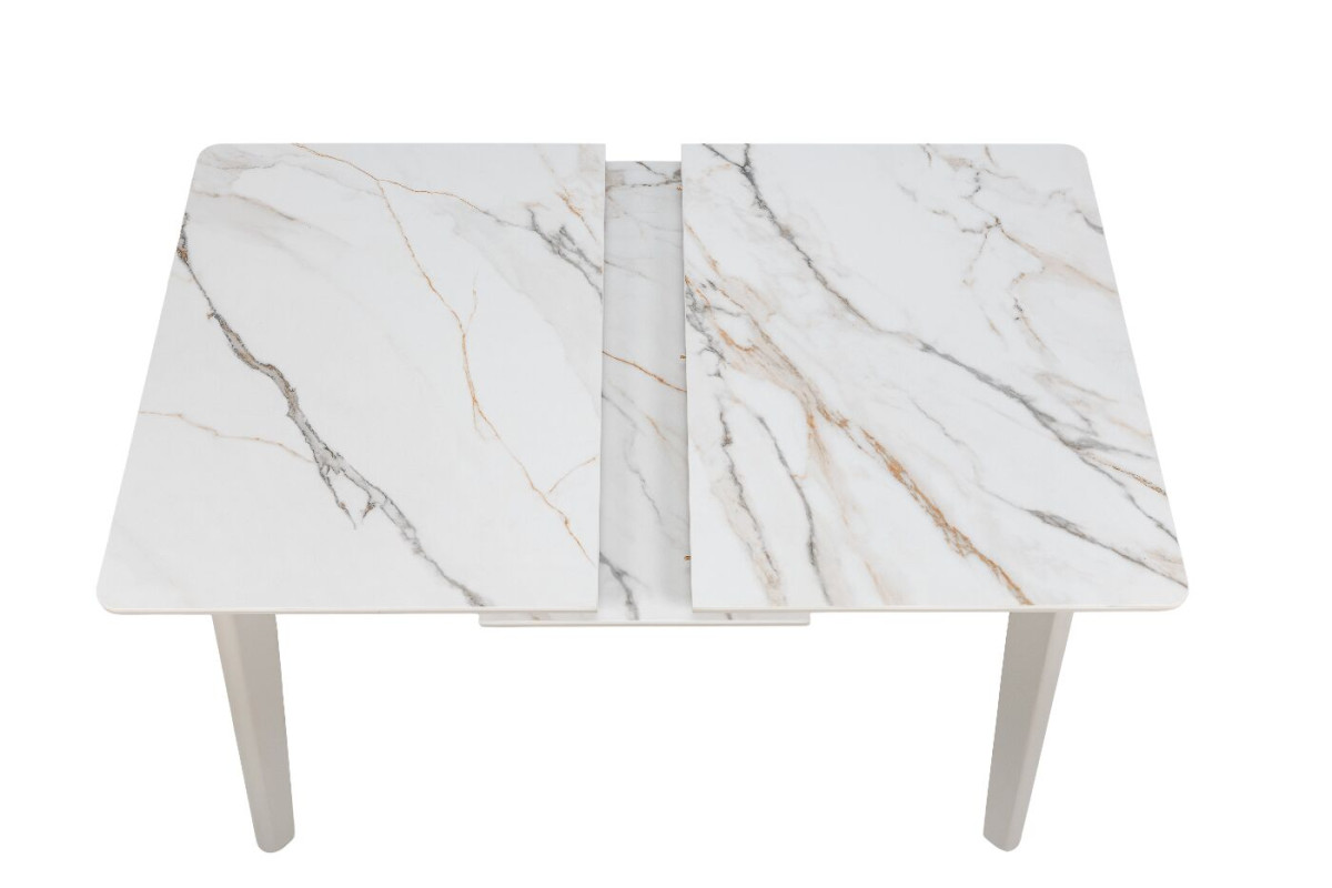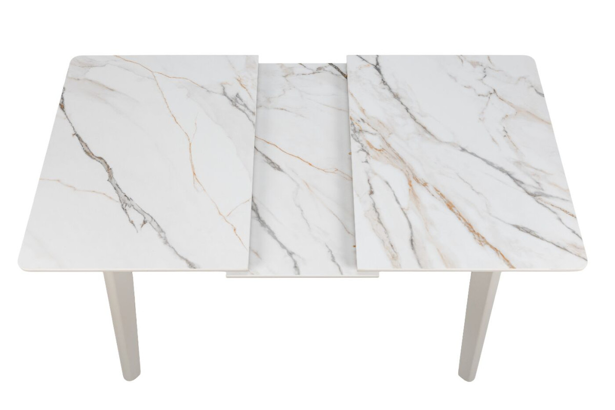 TM-76 — сучасний розкладний стіл, який поєднує витонченість природних відтінків та надійність перевірених матеріалів. Відтінок голден сенд із теплим пісочним акцентом надає інтер’єру затишку та вишуканої теплоти. Ідеальний вибір для їдальні чи кухні у натуральних, скандинавських або середземноморських тонах.Стільниця виконана з матової кераміки у комбінації з матовим МДФ — практичне й стильне рішення, стійке до подряпин та високих температур. Основа з пофарбованого дерева забезпечує надійність та стабільність конструкції.Стіл має автоматичний розкладний механізм, що дозволяє збільшити довжину зі 120 до 160 см — ідеально для прийому гостей або родинних вечерь.