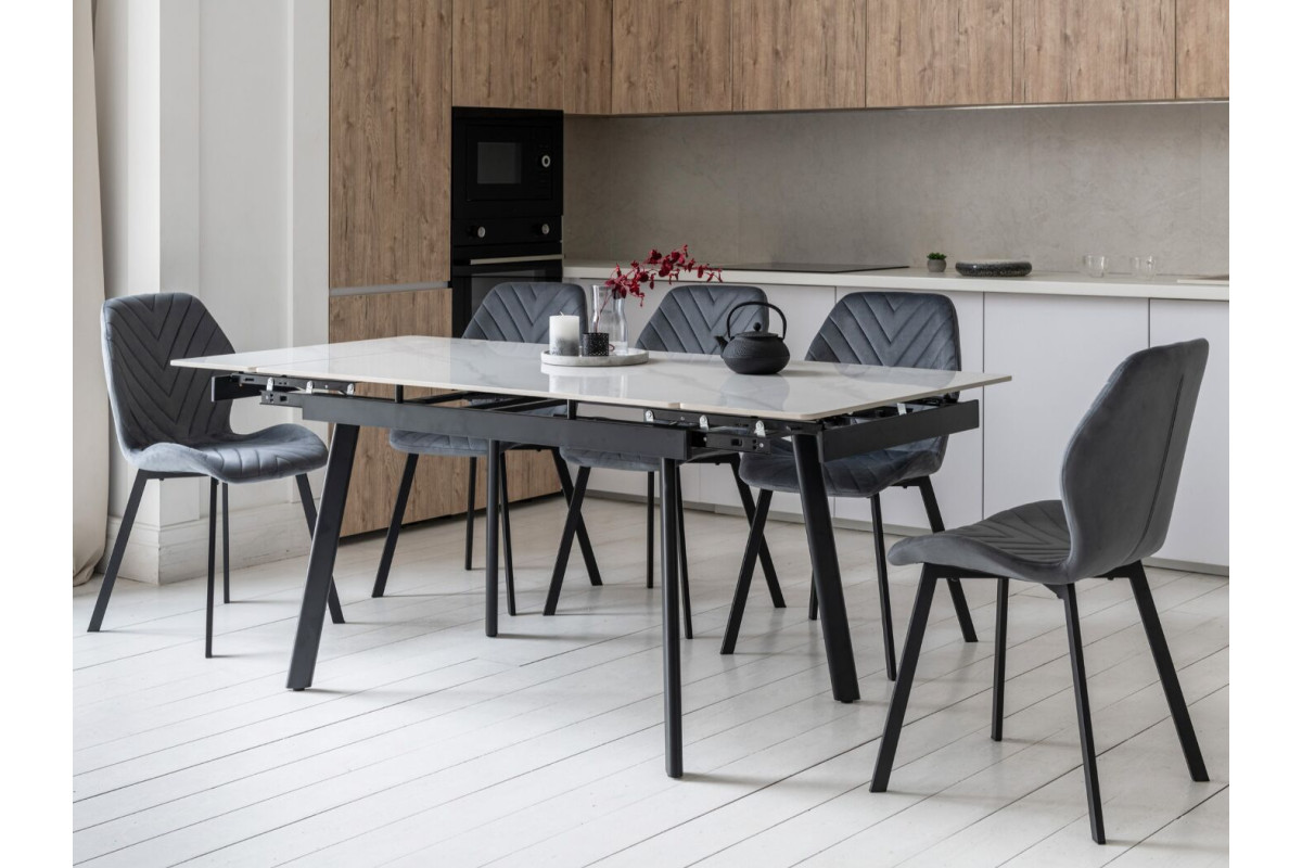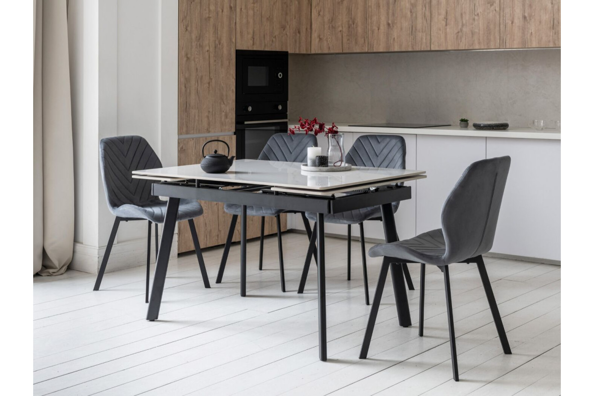 Керамічний стіл TM-98-1 у відтінку білий мармур + чорний — це стильне поєднання елегантності та функціональності, яке чудово підходить для сучасної оселі. Прямокутна форма та глянцева поверхня стільниці додають простору світла та вишуканості, а контраст білого мармуру з чорною металевою основою створює виразний акцент в інтер’єрі.Завдяки боковому механізму розкладання стіл легко трансформується з 120 до 180 см, забезпечуючи достатньо місця для щоденного використання або святкових застіль у колі близьких. Стільниця з глянцевої кераміки вирізняється стійкістю до високих температур, що робить її практичною та довговічною. Міцна металева основа гарантує надійність конструкції та стабільність у щоденному користуванні.TM-98-1 — це не просто обідній стіл, а стильний центр вашого простору, де комфорт поєднується з сучасним дизайном.