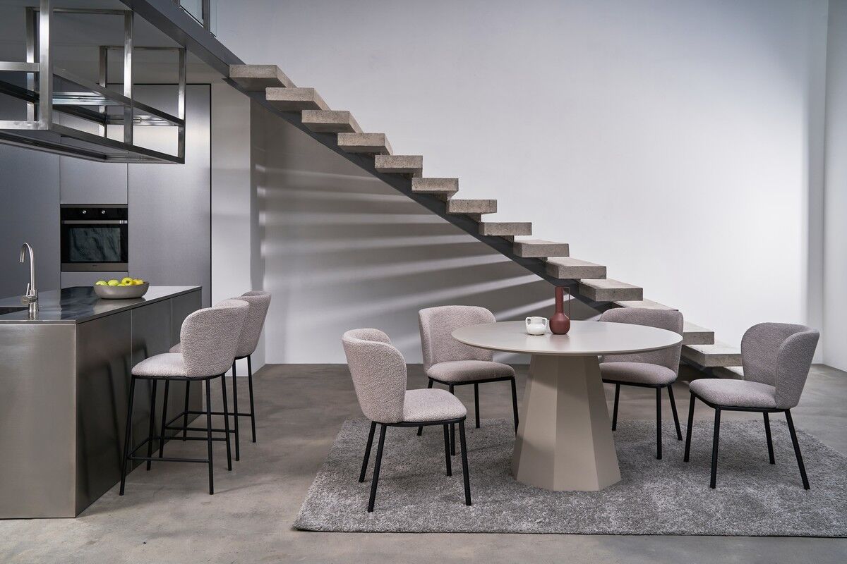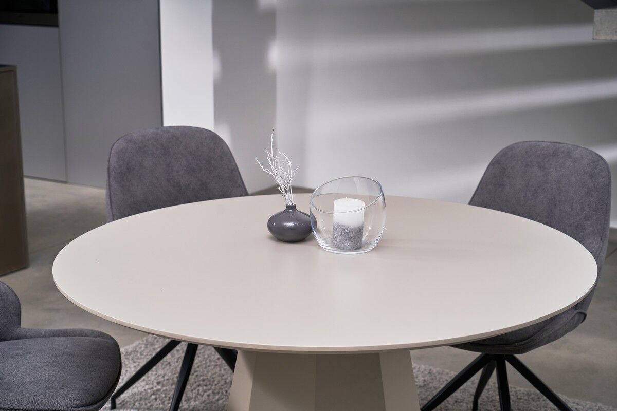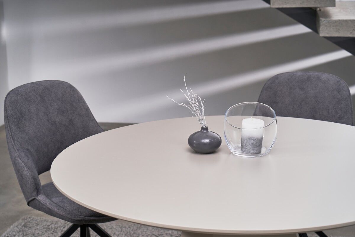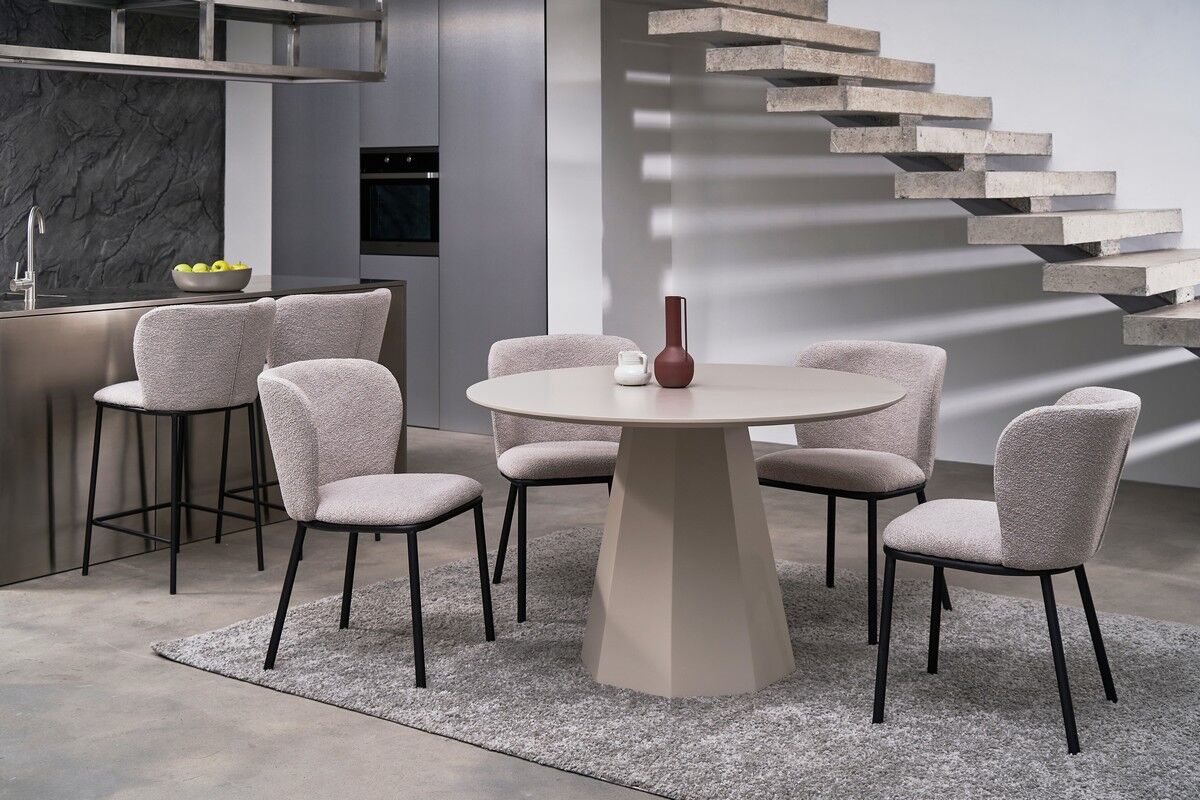 Стіл круглий у теплому пісочному кольорі - це елегантний і практичний предмет меблів, який додасть вашому приміщенню теплоти і затишку.Колір \"теплий пісок\" є досить універсальним і може гармонійно поєднуватися з різними елементами інтер'єру, такими як нейтральні кольори: такими як білий, бежевий, кремовий або світло- сірий. Ці поєднання створюють спокійну та приємну атмосферу в приміщенні.Використання яскравих або насичених кольорів в поєднанні з \"теплим піском\" може створити цікаві контрастні акценти в інтер'єрі. Наприклад, додавання аксесуарів чи декору в яскравих відтінках, таких як туркуаз або пурпурний.