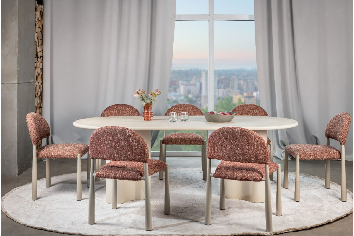 Стіл Кліо TМ-220 в кольорі бетон — елегантний вибір для тих, хто шукає поєднання сучасного дизайну та функціональності. Овальна форма столу і матове мікроцементне покриття надають йому індустріальний вигляд, що органічно впишеться в інтер'єр у стилях лофт, мінімалізм або сучасний стиль.Стільниця та основа виготовлені з МДФ, покритого матовим мікроцементом, що не тільки підвищує міцність столу, але й забезпечує його стійкість до подряпин та зносу. Завдяки великим розмірам (220×100 см), стіл ідеально підходить для просторих кімнат, офісів чи великих залів, де важлива не лише практичність, але й стильний дизайн.Цей стіл є надійним і довговічним варіантом, який доповнить інтер'єр, створюючи атмосферу елегантності та сучасної витонченості.