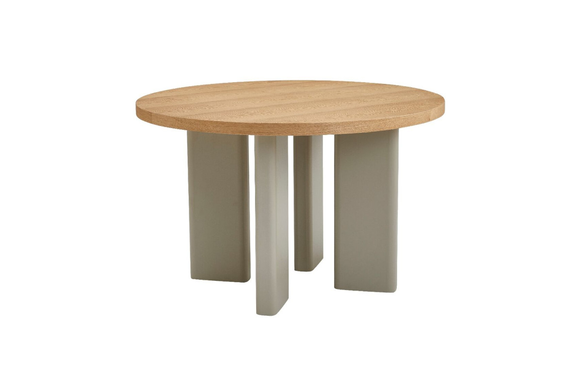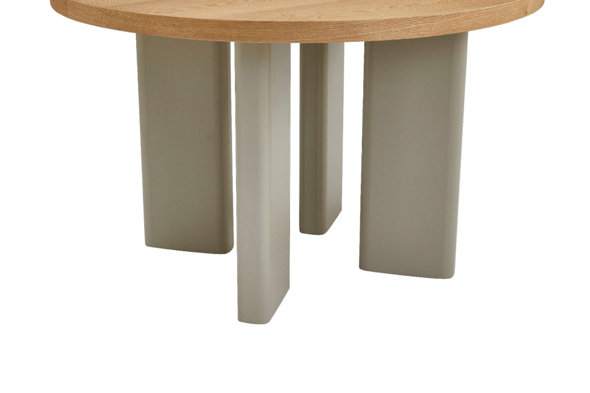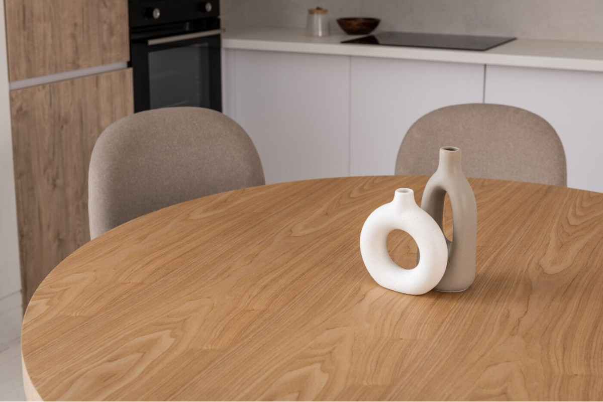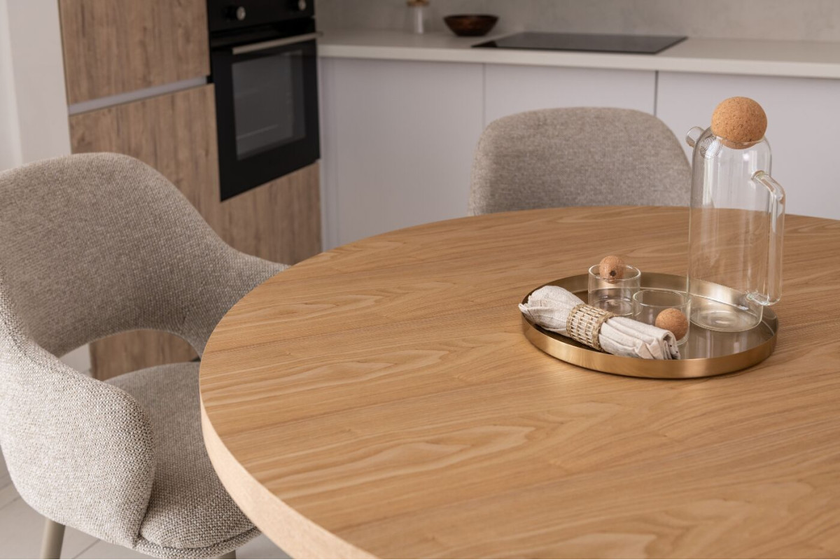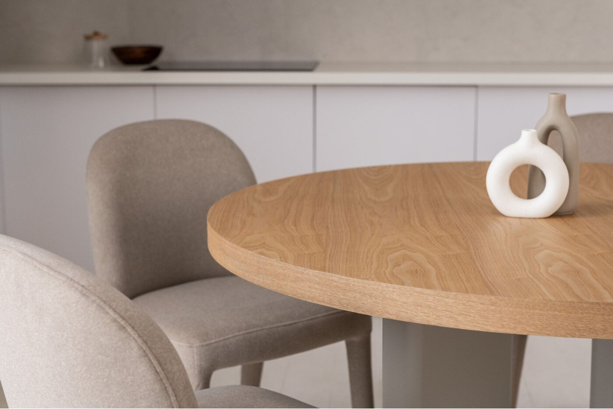 Стіл шпонований МДФ Амбра TM-235 ясень + теплий пісок — елегантне рішення для сучасної їдальні або кухні.Кругла стільниця діаметром 120 см виготовлена зі шпонованого МДФ у відтінку “ясень”, що додає виробу природного шарму та тепла.Основа у кольорі “теплий пісок” виконана з фарбованого МДФ з матовим поліуретановим покриттям, що забезпечує довговічність і стійкість до подряпин.Стіл нерозкладний, ідеально підходить для компактного простору.