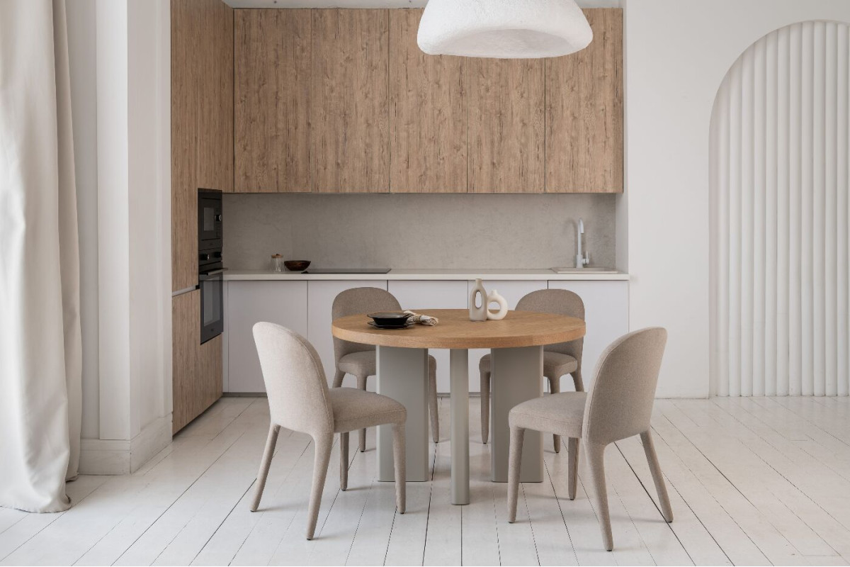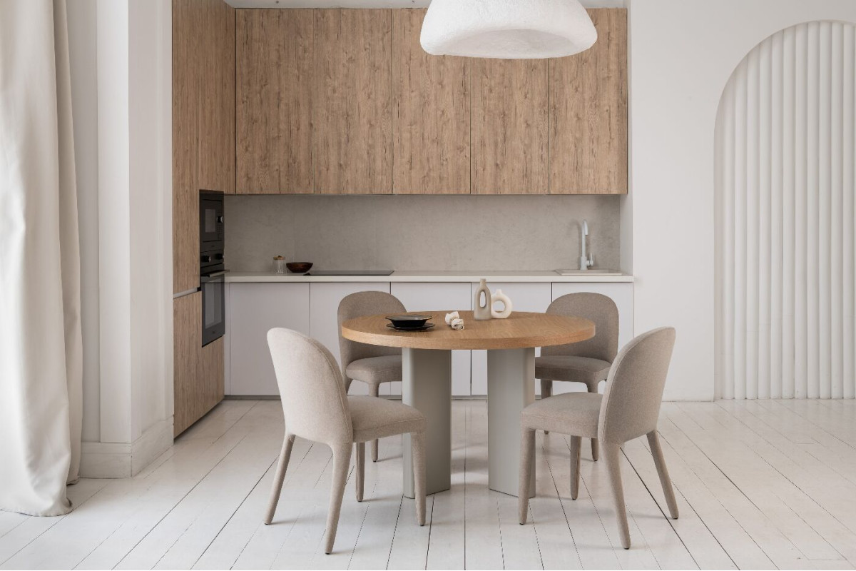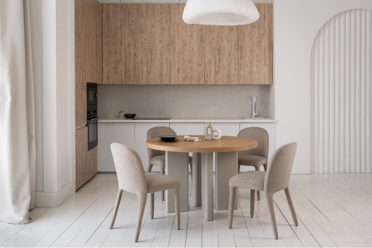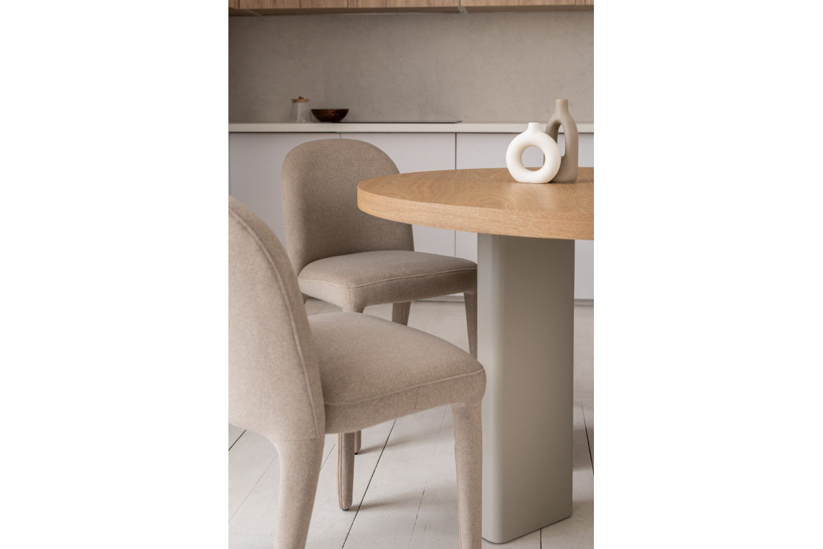 Стіл шпонований МДФ Амбра TM-235 ясень + теплий пісок — елегантне рішення для сучасної їдальні або кухні.Кругла стільниця діаметром 120 см виготовлена зі шпонованого МДФ у відтінку “ясень”, що додає виробу природного шар... Читать далее...